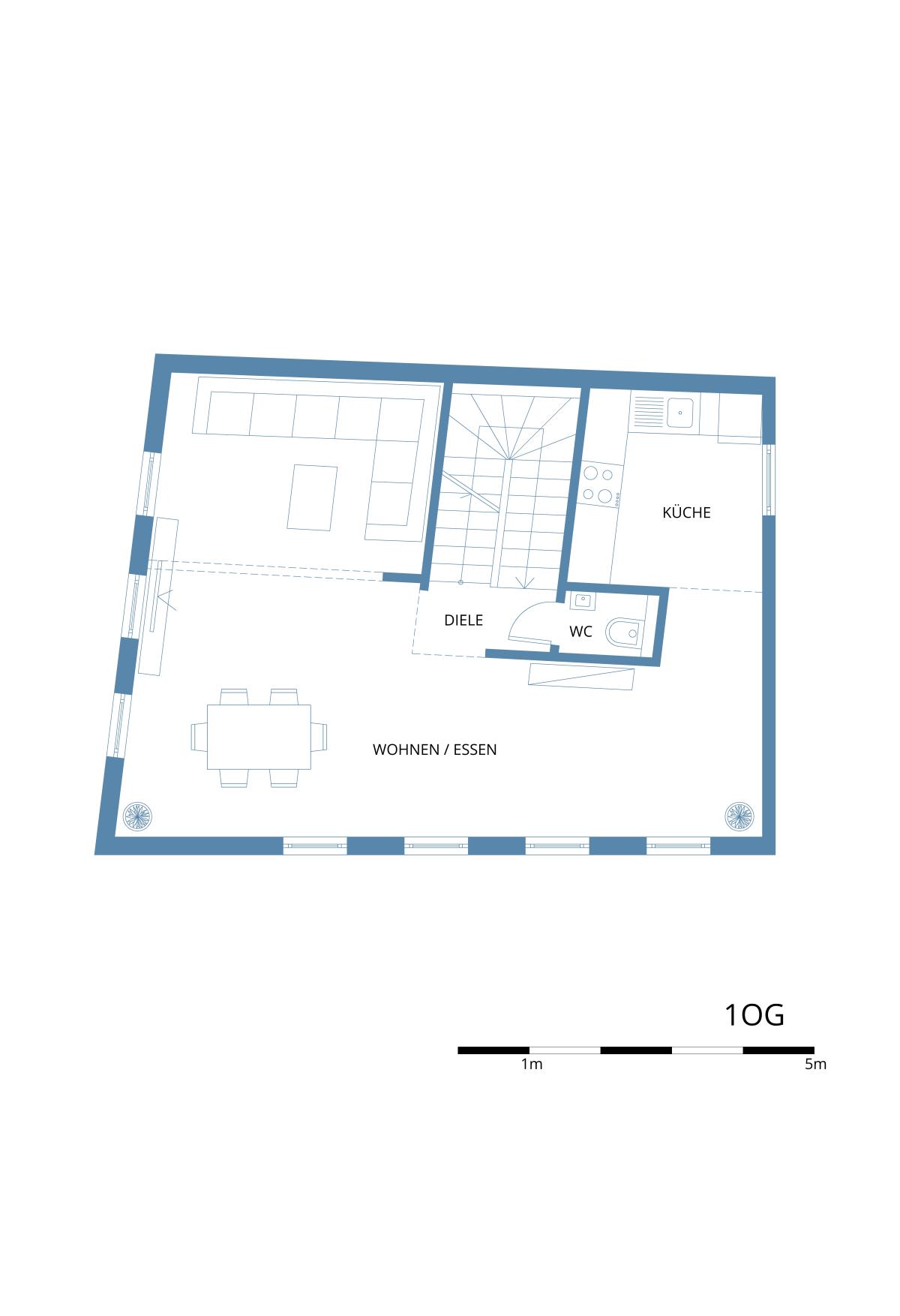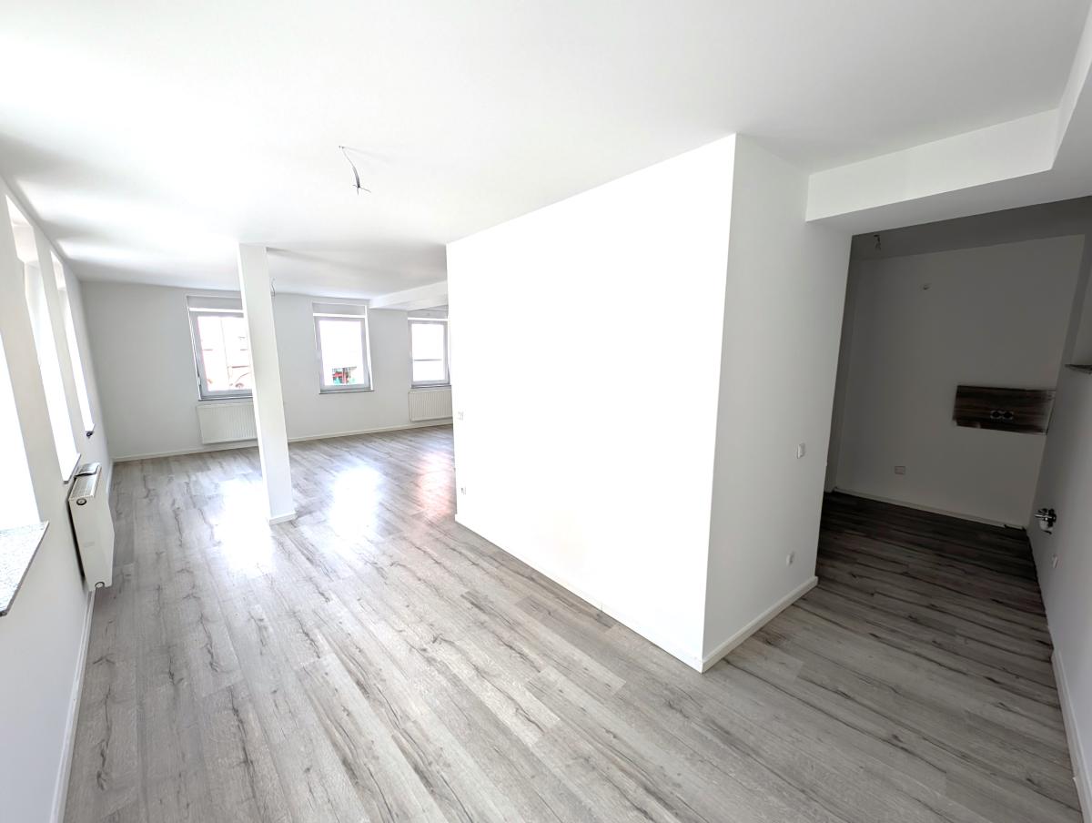 Die Wohnung erstreckt sich über das erste und zweite Obergeschoss sowie das Dachgeschoss und verfügt über eine großzügige Wohnfläche von ca. 125,81 m². Ergänzt wird das Raumangebot durch einen großen Gewölbekeller mit einer Fläche von ca. 39,98 m², der vielfältige Nutzungsmöglichkeiten bietet. Insgesamt stehen fünf Zimmer inklusive eines Studios zur Verfügung, die durch ihre durchdachte Aufteilung und die zahlreichen Fenster besonders hell und einladend wirken. Die offene Küche fügt sich nahtlos in den Wohnbereich ein und unterstreicht den offenen, zeitgemäßen Grundriss.