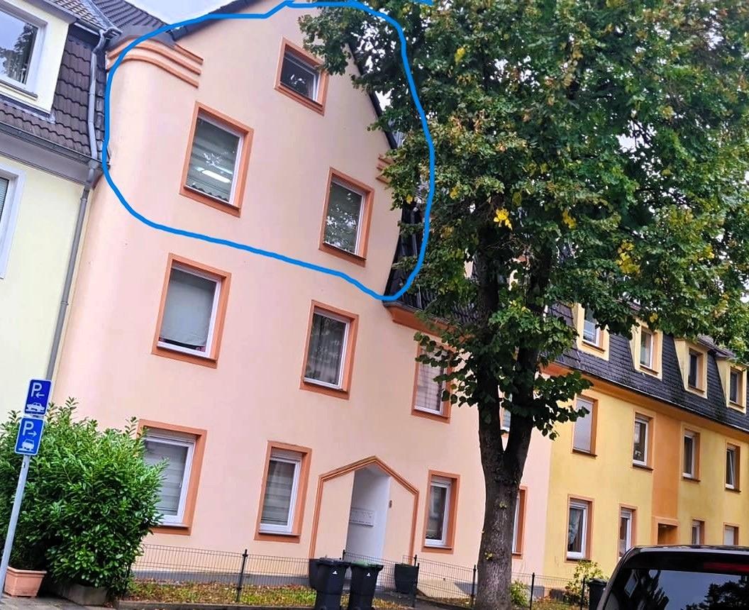 Zum Verkauf steht provisionsfrei eine gepflegte 4-Zimmer-Maisonettewohnung im 2. Obergeschoss sowie im Dachgeschoss eines ordentlichen Mehrfamilienhauses mit insgesamt nur vier Wohneinheiten.