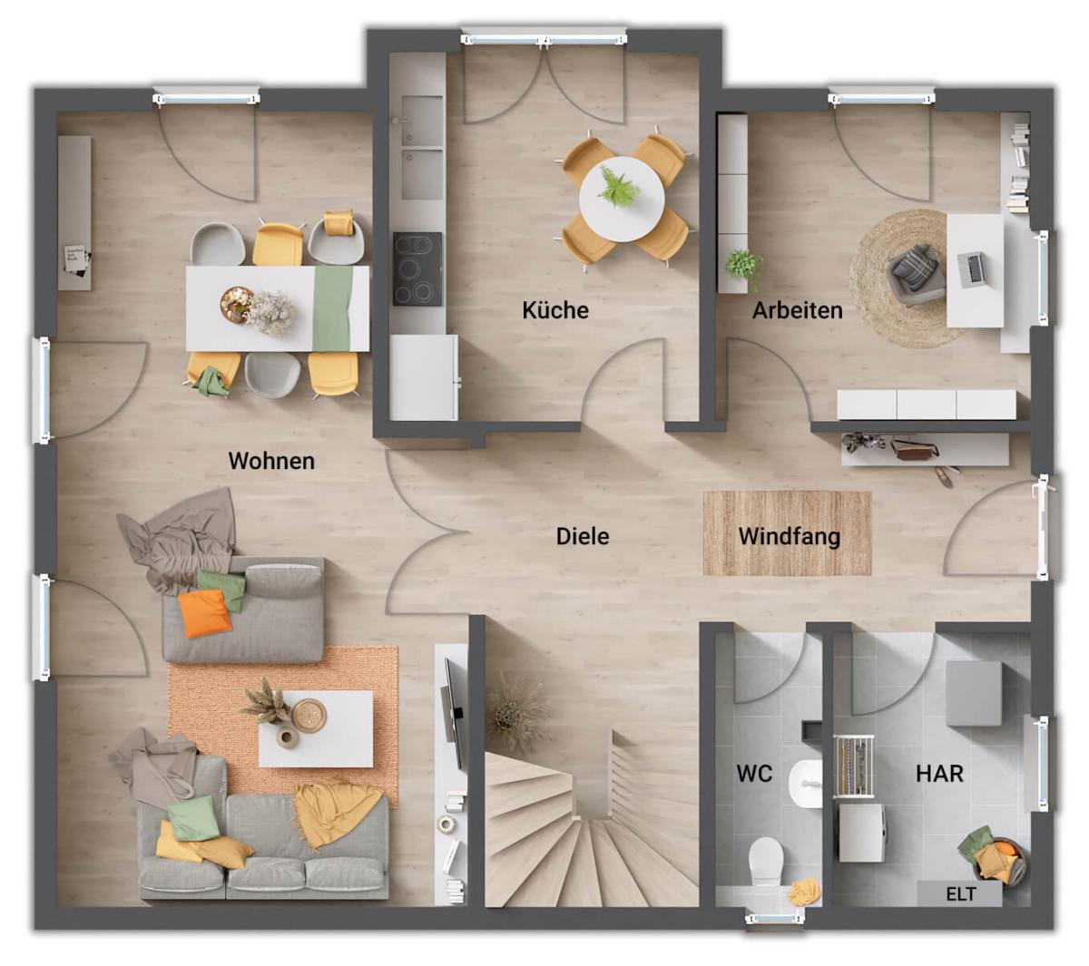 • Fußbodenheizung: Warme Füße? Auch die Fußbodenheizung ist inklusive. Sie steigert nicht nur den Wert Ihres Hauses, sondern sorgt ganz nebenbei noch für echtes Wohngefühl.