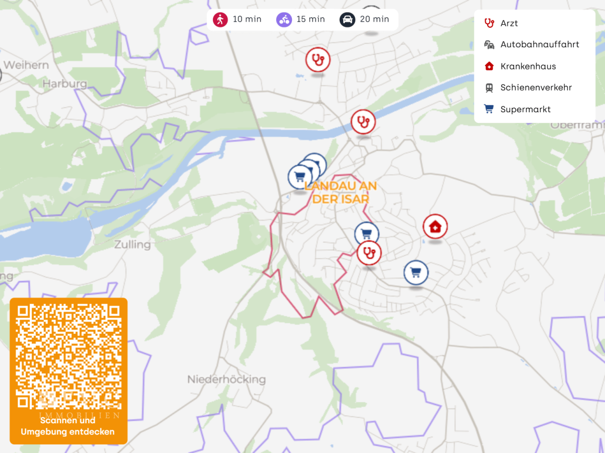 Die Immobilie befindet sich in Landau an der Isar, einer traditionsreichen und zugleich lebendigen Stadt im niederbayerischen Landkreis Dingolfing-Landau. Mit rund 14.000 Einwohnern bietet Landau eine gute Mischung aus urbanem Leben und kleinstädtischem Charme. Die historische Altstadt mit ihren Geschäften, Cafés und Restaurants lädt zum Verweilen ein.
