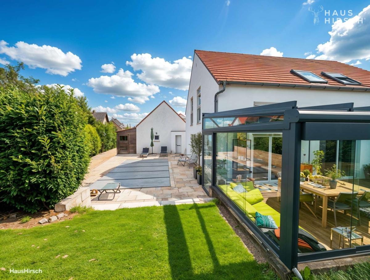 STILVOLL WOHNEN IN ESSENBACH – ARCHITEKTUR MIT POOL, WINTERGARTEN & DOPPELGARAGE FÜR DIE FAMILIE