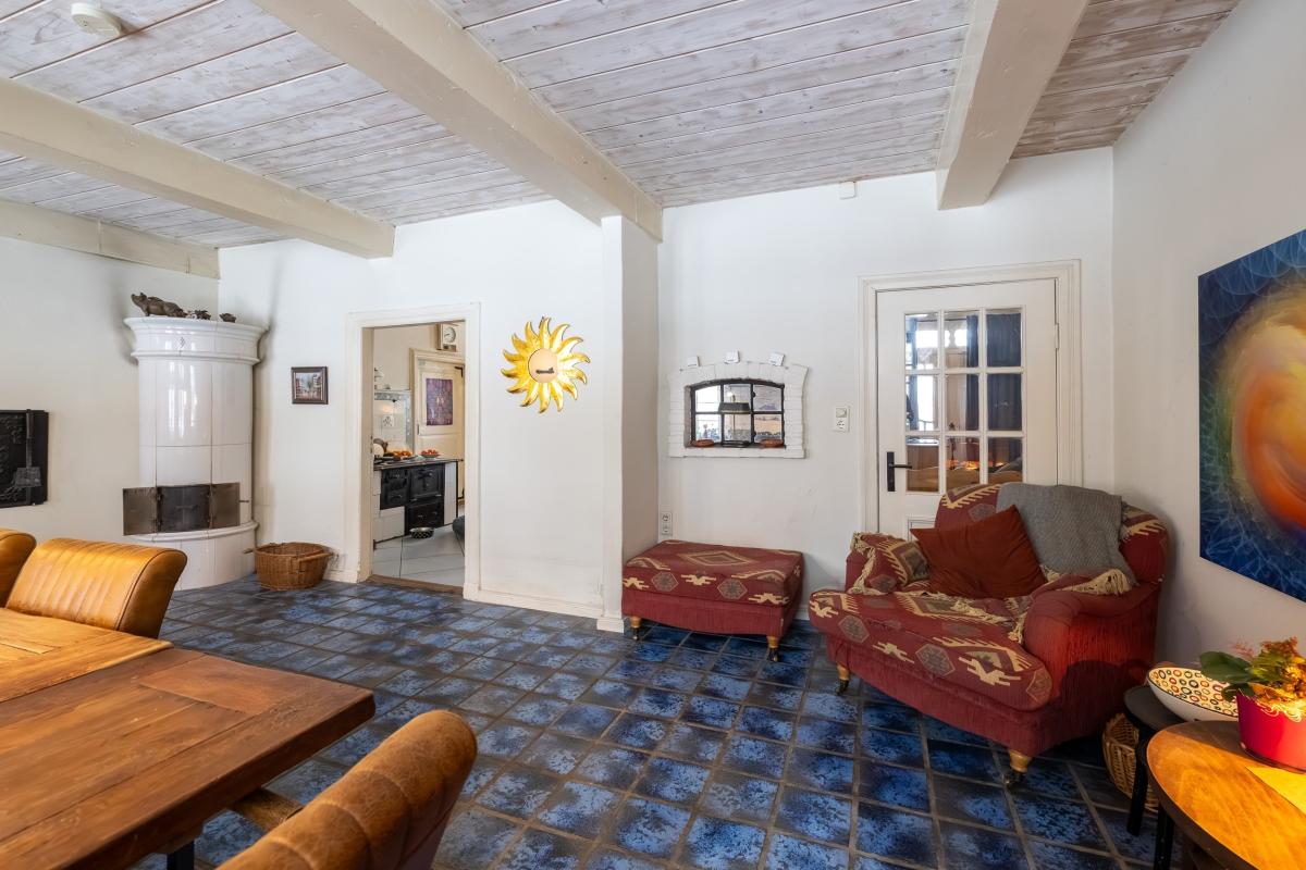 Die Ausstattung des Hauses ist ansprechend und umfangreich, diese beinhaltet u.a. zwei wertvolle Kachelöfen, antike Bodenfliesen, Holzdielen sowie diverse weitere historische Details.