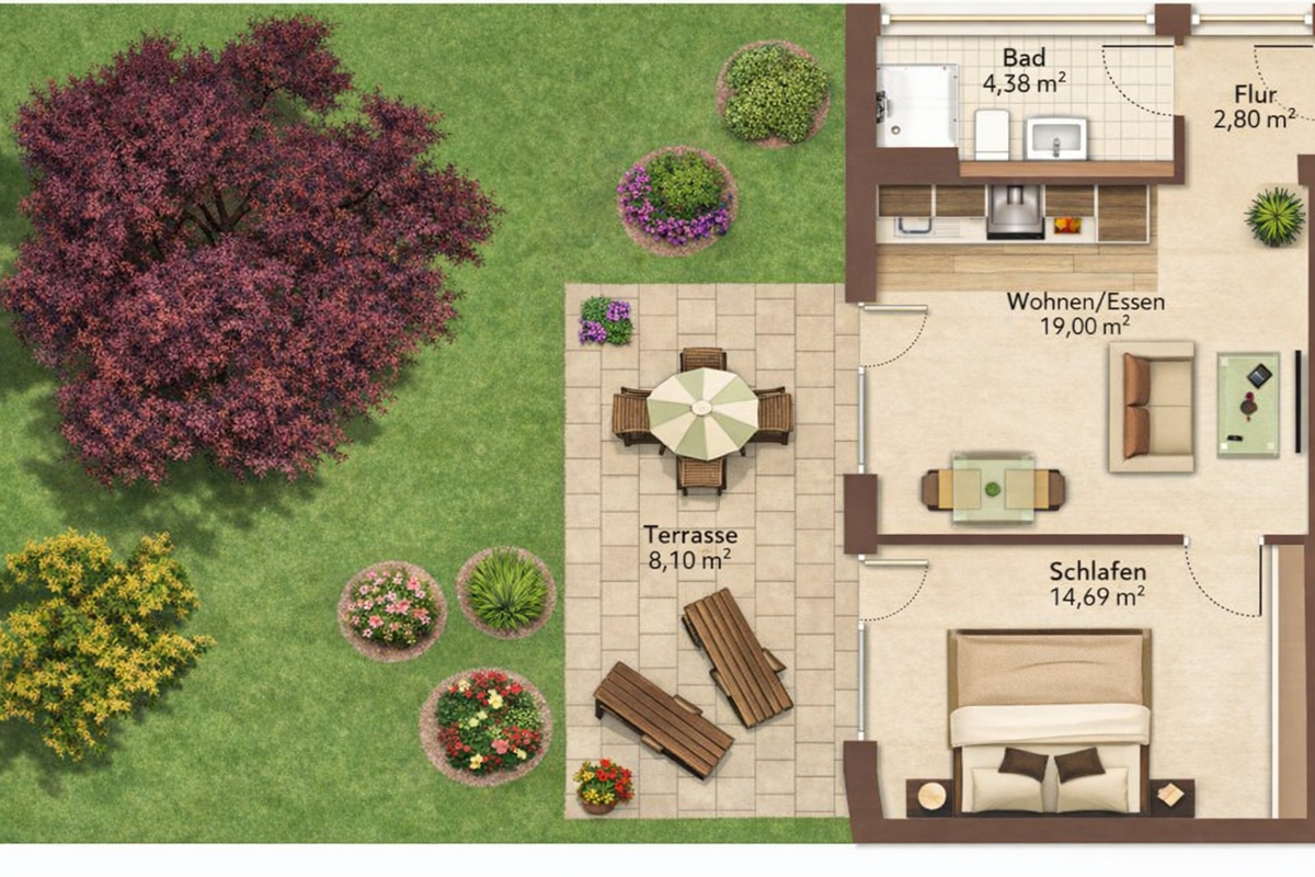 Luxuriös voll-möblierte 2-Zimmer-EG-Wohnung mit Terrasse und Garten in Konstanz-Staad
