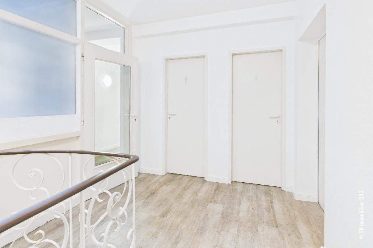 Diese Gewerbeflächen mit Ladenlokal und Gastronomie und darüber liegenden Büroflächen befinden sich in einem Wohn- und Geschäftshaus mit insgesamt 25 Einheiten. Die direkte Innenstadtlage am Ostfleth von Buxtehude spricht für sich. Es bestehen Mietverhältnis für Laden- und Gastroflächen im EG. Im Obergeschoss befinden sich eine Bürofläche, die durch Zusammenlegung zweier Einzelflächen entstanden ist und über einen eigenen Eingang verfügt. Die Bürofläche kann direkt bezogen oder vermietet werden.