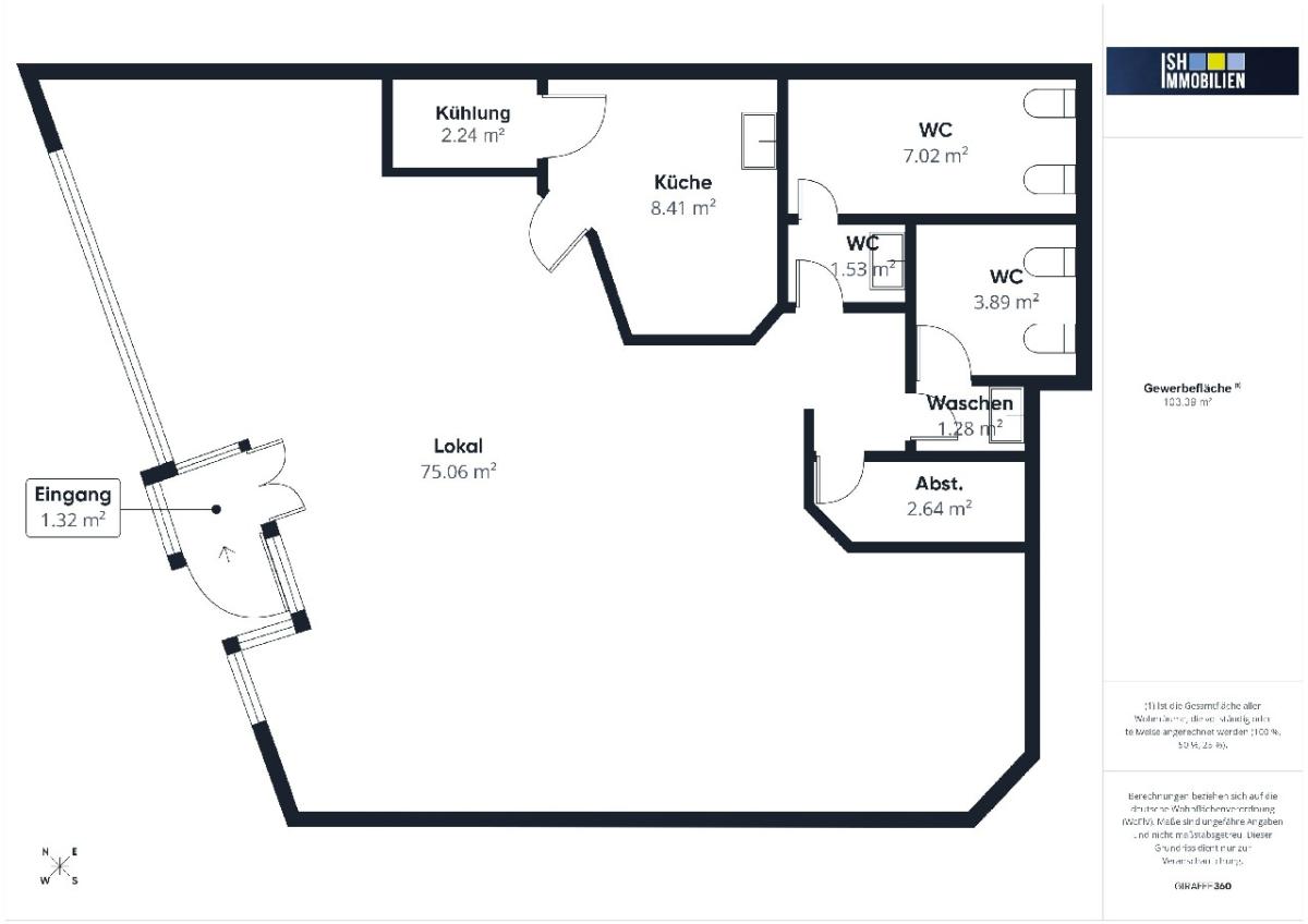 - mit ca. 100 m² Nutzfläche, Toiletten u. Kühlraum im EG