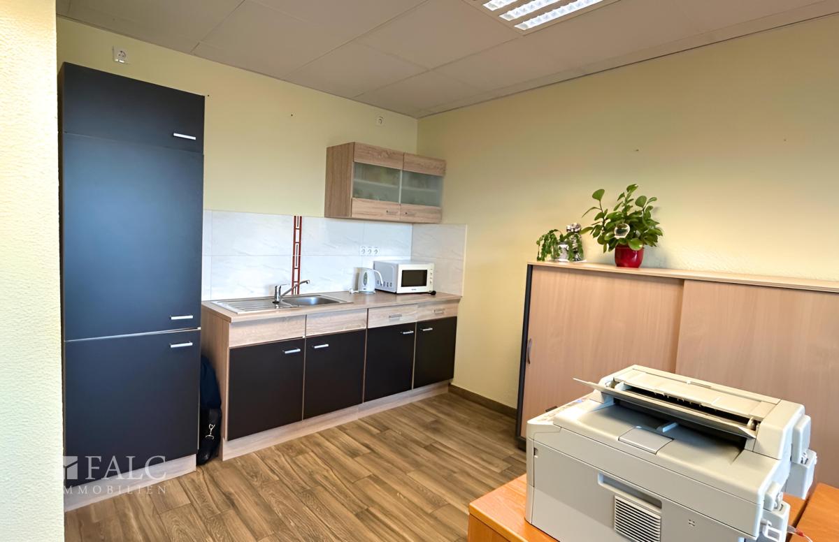 Der Bürobereich mit ca. 119 m² bietet zwei helle Büroräume, von denen einer mit einer integrierten Küchenzeile ausgestattet ist. Ergänzend stehen ein Damen-WC sowie ein Herren-WC zur Verfügung. Ein großzügig geschnittener Arbeitsbereich ermöglicht vielseitige Nutzungskonzepte und unterstützt effiziente betriebliche Abläufe.