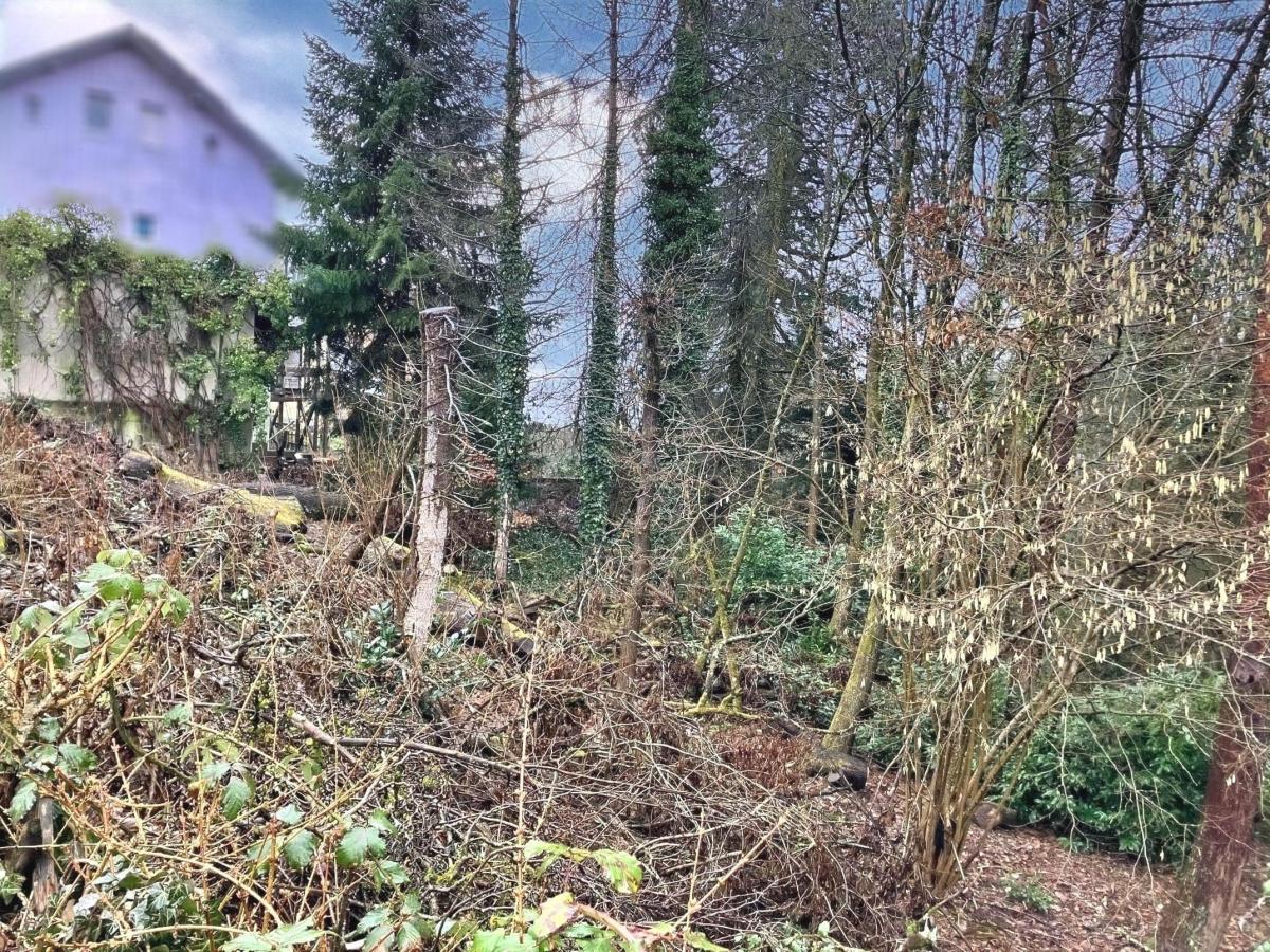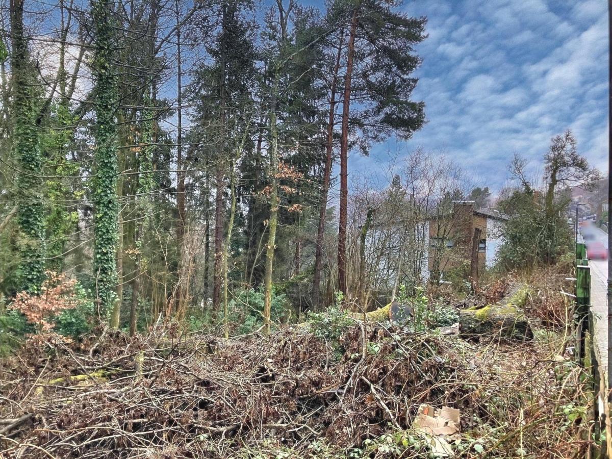 Das Grundstück ist nach Südosten ausgerichtet und verfügt über ein abfallendes Gelände, was die Anlage eines Kellers nahelegt und eine ansprechende Terrassen- oder Gartenarchitektur ermöglicht. Ein umfangreicher Baumbestand kann dabei zur Eigenverwertung gerodet werden.