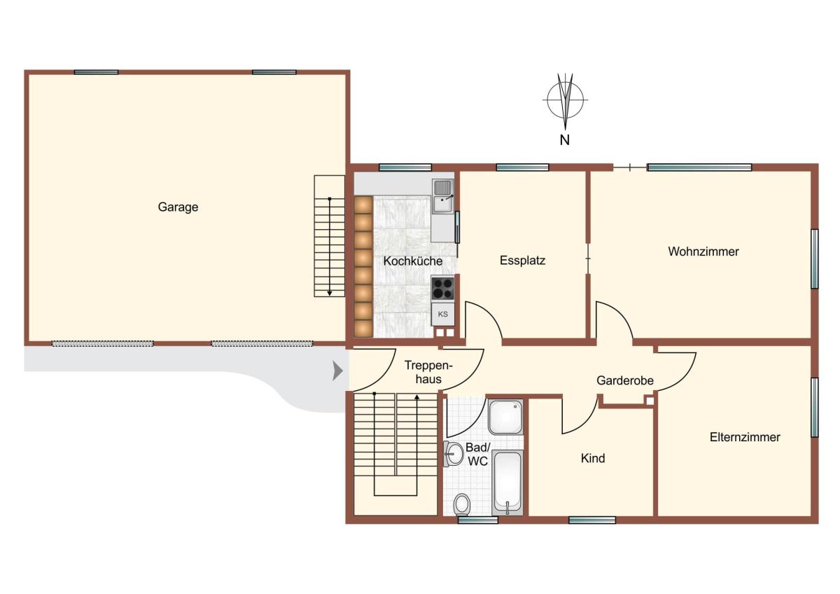 Erdgeschoss: sep. Hausflur