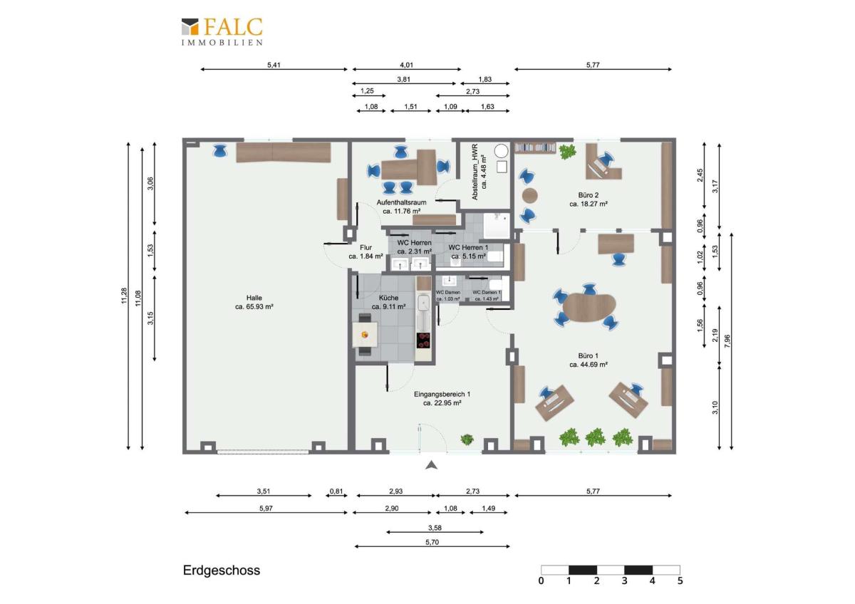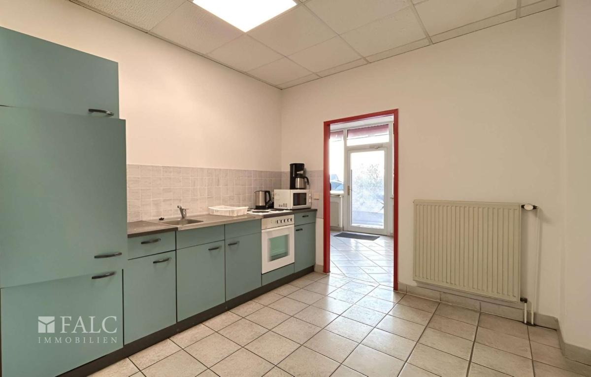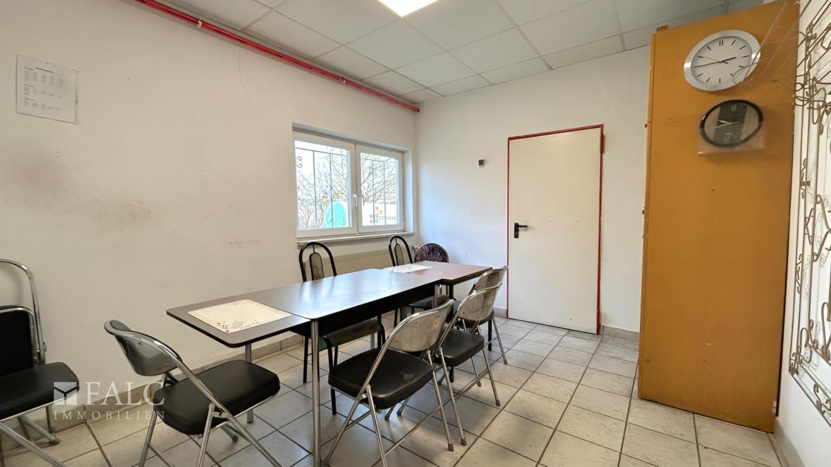 Das Bürogebäude mit einer Fläche von ca. 123 m² ist praxisgerecht gestaltet und auf die täglichen Anforderungen eines Gewerbebetriebs ausgelegt. Zwei großzügige und helle Büroräume bieten ausreichend Platz für Verwaltungsaufgaben, Kundenempfang oder Besprechungen. Ergänzt wird der Bürotrakt durch ein Damen-WC, ein Herren-WC mit integrierter Dusche, eine vollwertige Küche sowie einen Aufenthaltsraum, die für Komfort und eine angenehme Arbeitsatmosphäre für Mitarbeiter sorgen. Die direkte Verbindung zur angrenzenden Werkstatt- bzw. Produktionshalle mit ca. 65 m² ermöglicht effiziente Arbeitsabläufe und kurze Wege zwischen Verwaltung und operativem Bereich.