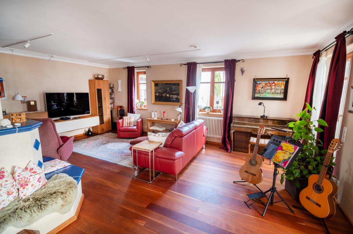 Herzlich Willkommen in diesem mediterran gestalteten Dreiseithof, der aufwändig zu einem wunderschönen Einfamilienhaus mit zwei weiteren Wohneinheiten im Hinterhaus ausgebaut wurde. Mit einer Gesamtwohnfläche von ca. 260 m² und einem Grundstück von 571 m² bietet es genügend Platz für die ganze Familie. Sie können hier einziehen und sich wohlfühlen. Das 2006 erbaute und 2025 modernisierte Haupthaus mit ca. 155 m² verfügt im EG über einen großen Wohn-Essbereich mit Küche, ein Gäste-WC und diverse Nebenräume. Im Wohnbereich sorgt der wassergeführte Kachelofen im Winter für gemütliche Abendstunden und auf der überdachten Terrasse, dem Balkon oder im abgeschlossenen Innenhof können Sie Ihre Freizeit im eigenen Zuhause voll genießen. Im OG befinden sich zwei Schlafzimmer mit einer Ankleide, ein Büro mit Nebenraum und ein großzügiges Bad. Das Hinterhaus wurde 1999 fertiggestellt und bietet im Erdgeschoss eine kleine Einliegerwohnung bzw. ein Büro. Das Obergeschoss ist auf ca. 65 m² zu einer Wohneinheit ausgebaut. Im Nebengebäude befindet sich im Dachboden ein kleines Fitnessstudio.