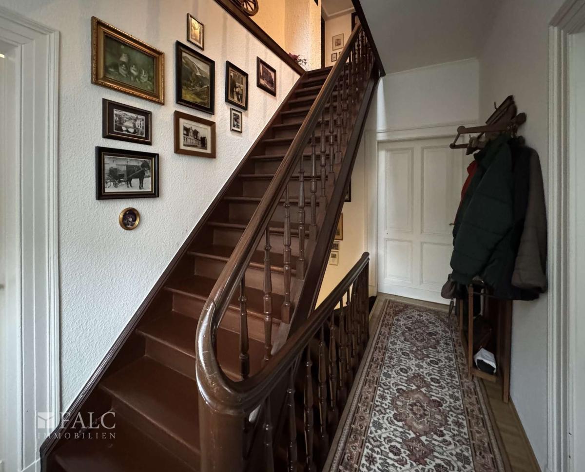 - Massive Holztreppe mit Originalbalustrade