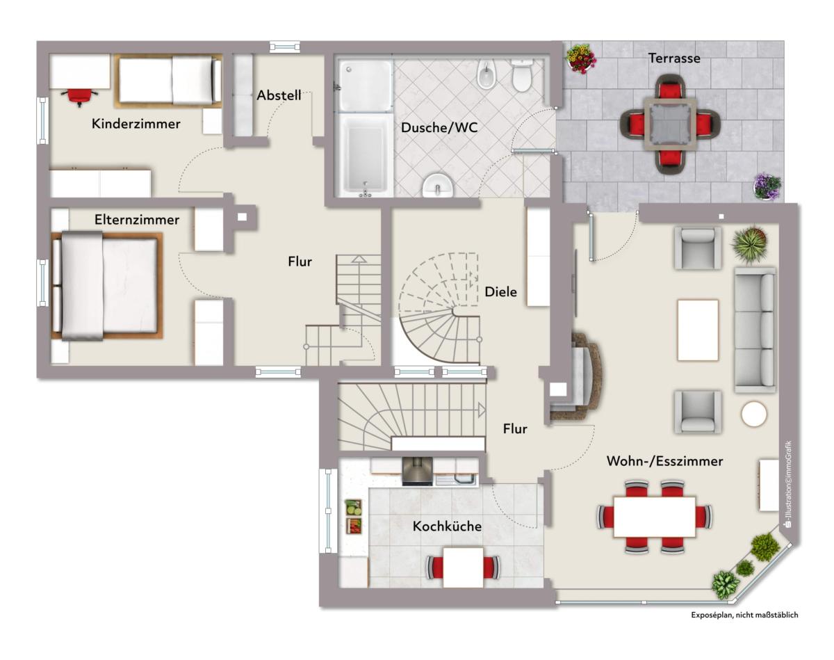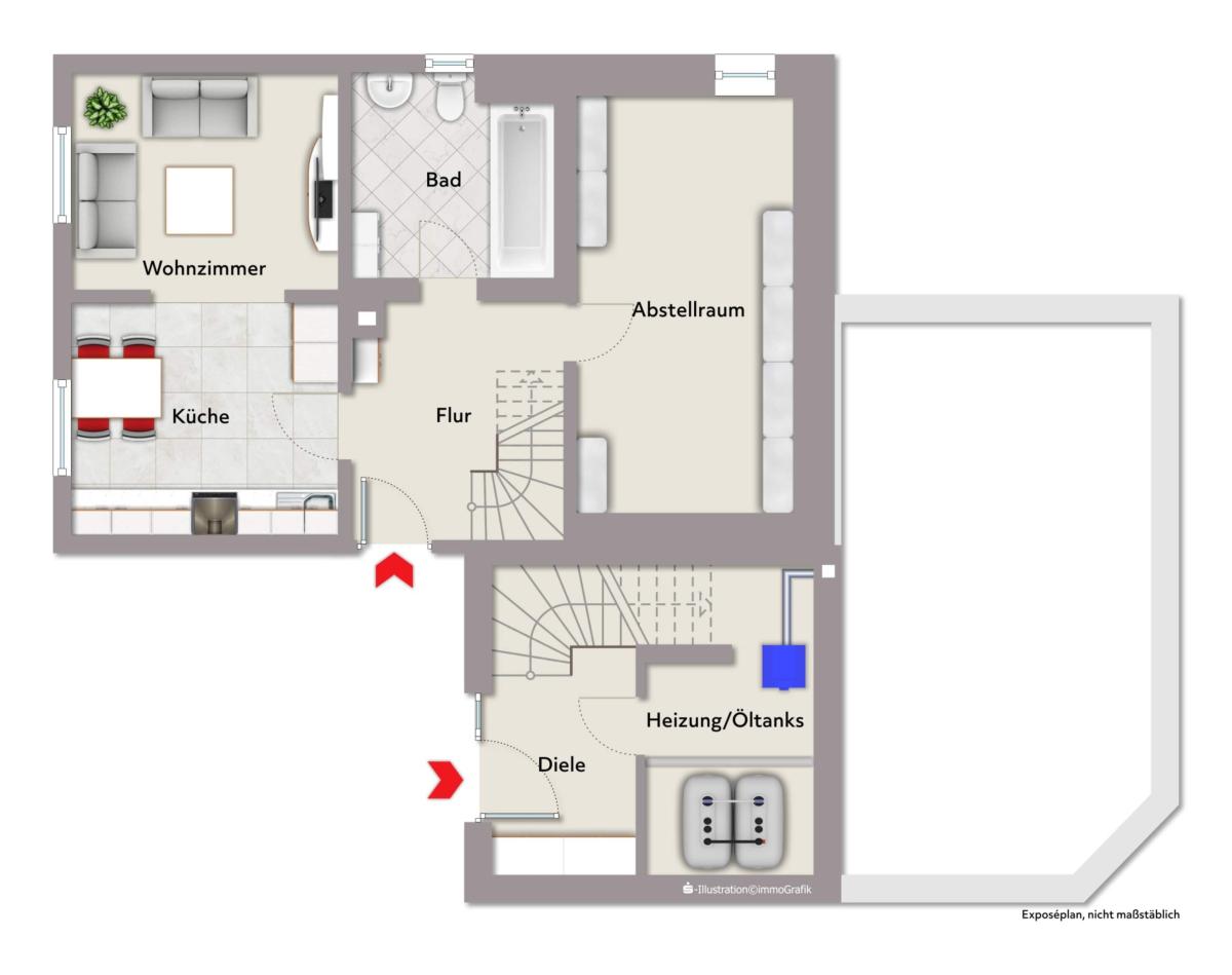 Eine Haushälfte kann selbst bewohnt werden, während die zweite Einheit vermietet wird und somit zur Finanzierung beiträgt. Alternativ bietet sich das Haus hervorragend als Mehrgenerationenhaus an, bei dem Wohnen in Nähe und dennoch mit ausreichender Privatsphäre möglich ist.