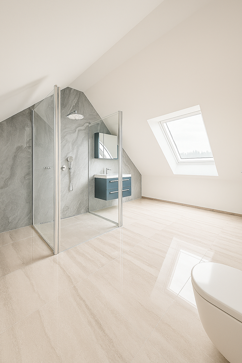Bodengleiche Dusche, hochwertige Fliesen 🚿