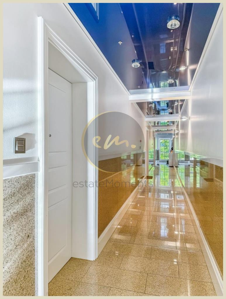 Die Wohnung ist mit hochwertigem Parkett ausgestattet, zusätzlich sorgt indirekte Deckenbeleuchtung in Wohn-, Schlaf- und Küchenbereichen für ein stimmungsvolles Ambiente. Die offene Küche ist zweckmäßig geschnitten und lässt sich perfekt in das Wohnkonzept integrieren.