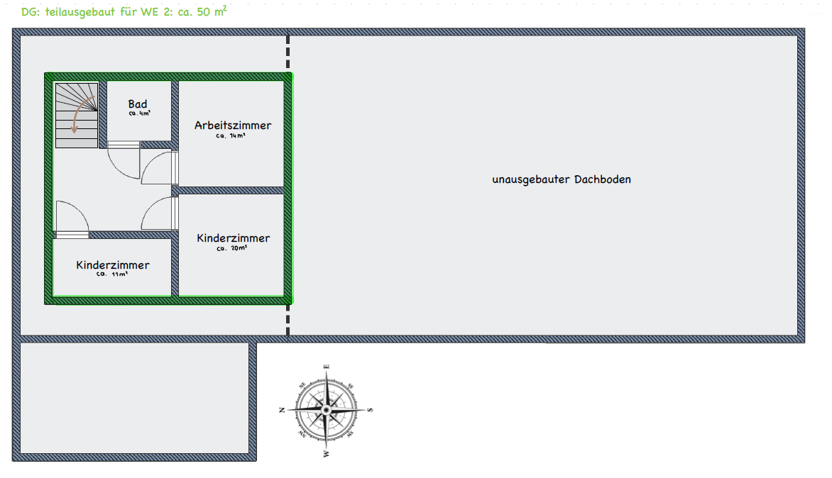• Wohnfläche: individuell nutzbar, großzügig geschnitten