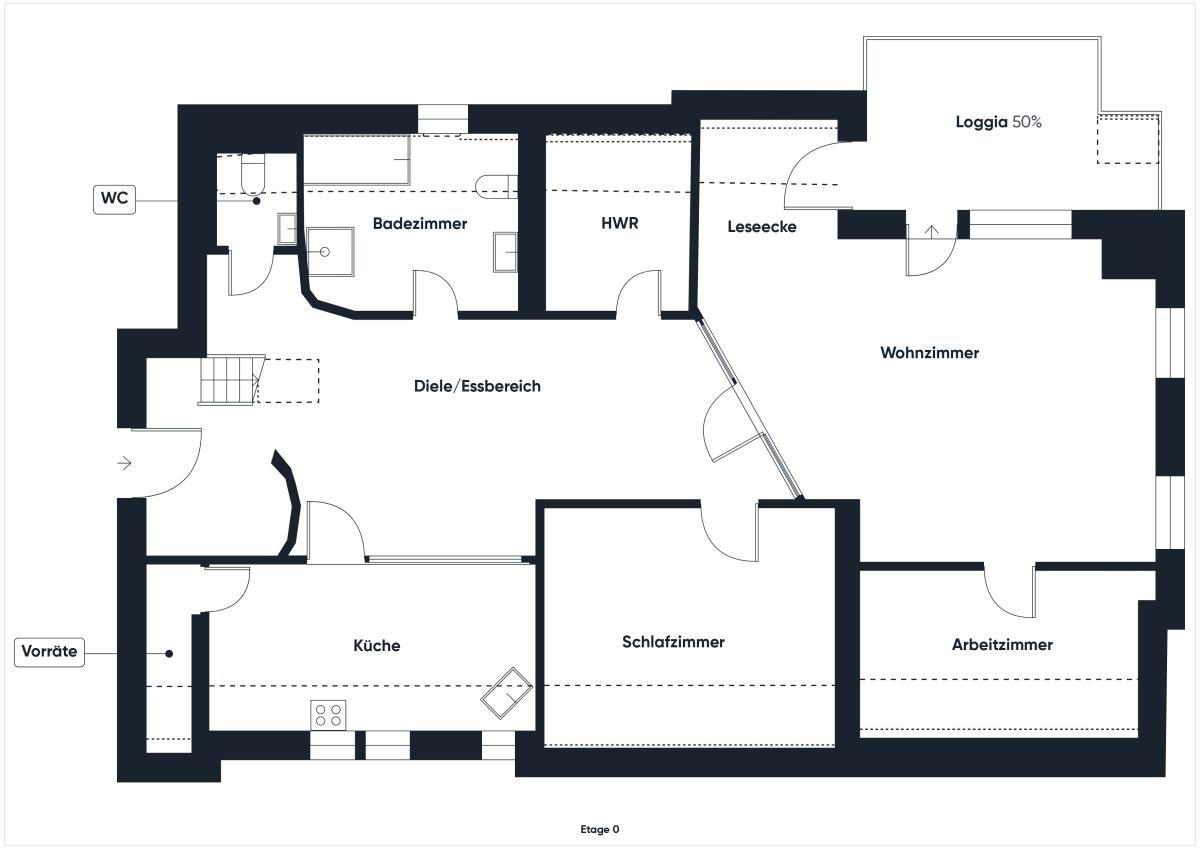 Die 130qm Wohnfläche werden durch zwei Schlafräume/ Arbeitszimmer, einen kleinen Abstellraum neben der Küche, den Hauswirtschaftsraum mit Waschmaschinenanschluss, ein sehr modernes Vollbad und ein Gäste-WC abgerundet. Die zuletzt genannten Sanitärräume wurden von den jetzigen Mietern sehr geschmackvoll renoviert und ausgestattet.