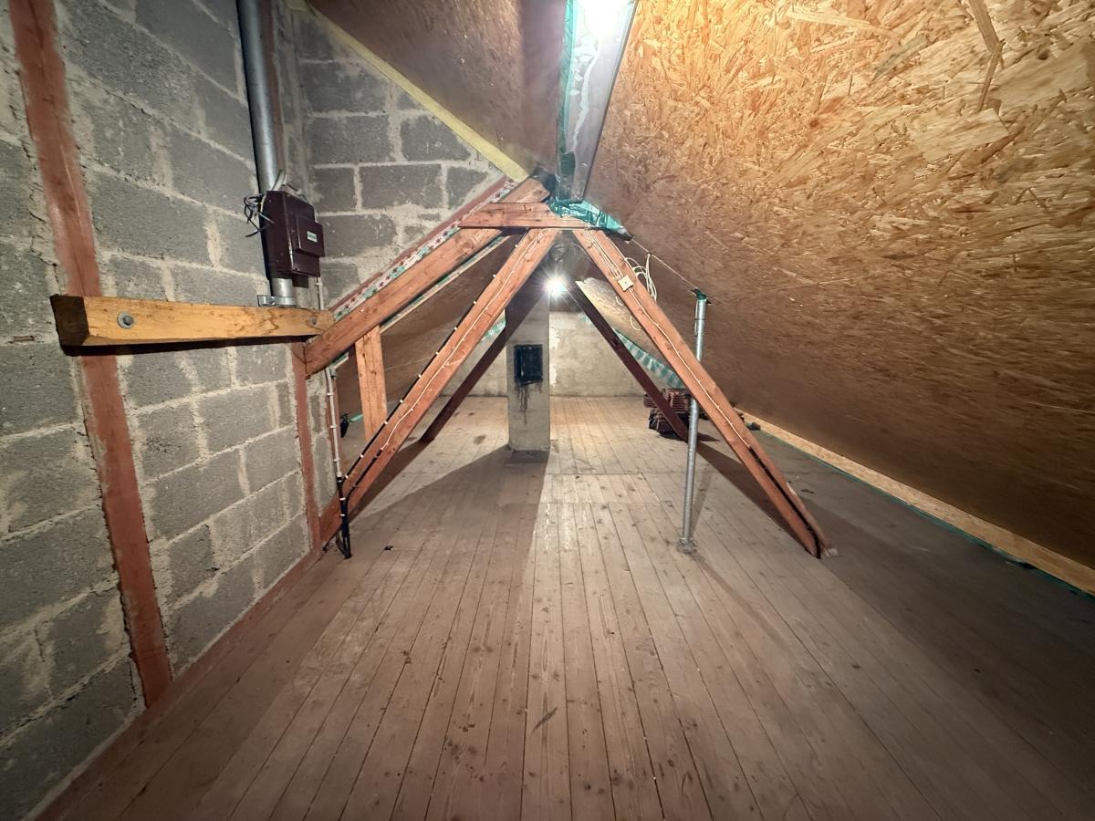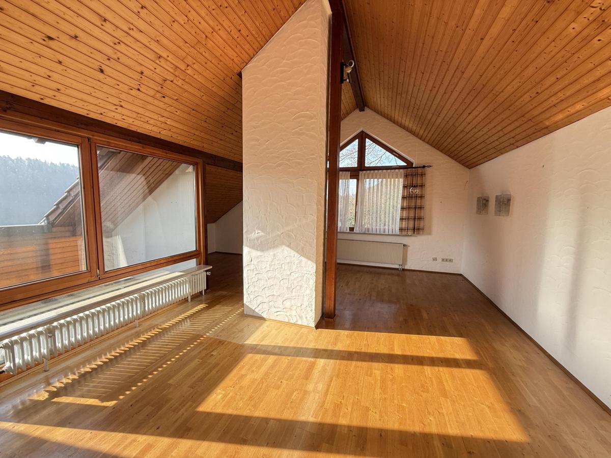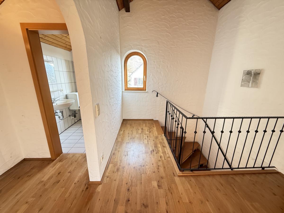 Das darüberliegende Stockwerk umfasst einen großen, unausgebauten Bühnenbereich, einen Garderobenbereich, in welchen bei Bedarf eine Dusche eingebaut werden kann und somit als weiteres Bad mit WC zur Verfügung steht. Momentan ist im Dachgeschoss bereits ein WC vorhanden. Zudem gibt es dort ein großes, helles Dachgeschosszimmer mit überdurchschnittlicher Deckenhöhe und einer gemütlichen Dachloggia. Das Dach ist professionell gegen Wärmeverluste gedämmt und mit Tondachpfannen eingedeckt. Einige Fenster wurden bereits erneuert.
