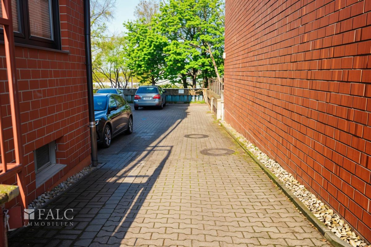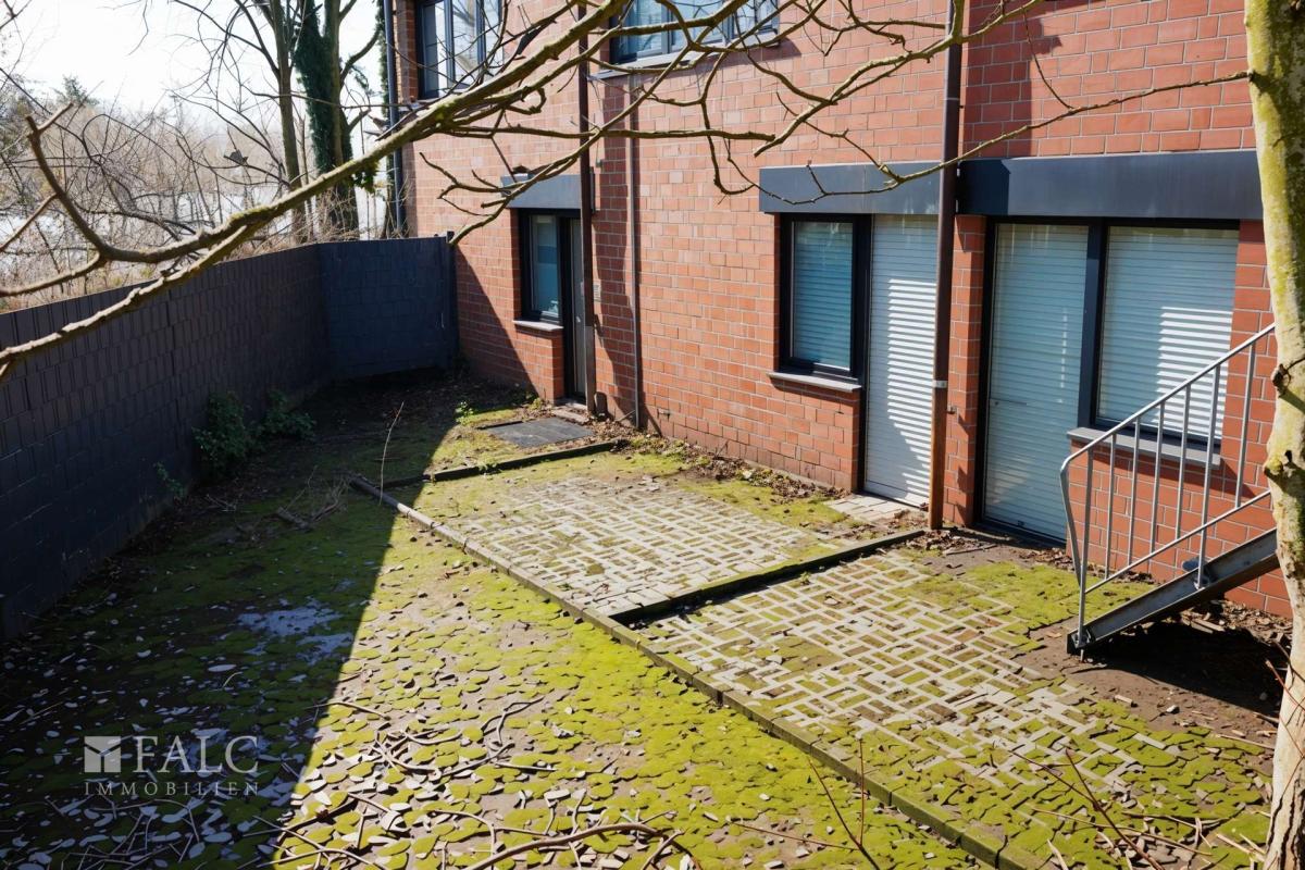 Die derzeit leerstehende Einheit im Erdgeschoss/Souterrain verfügt über einen direkten Zugang zu einer Terrasse und bietet damit zusätzlichen Nutzwert für Mitarbeiter oder Kunden.