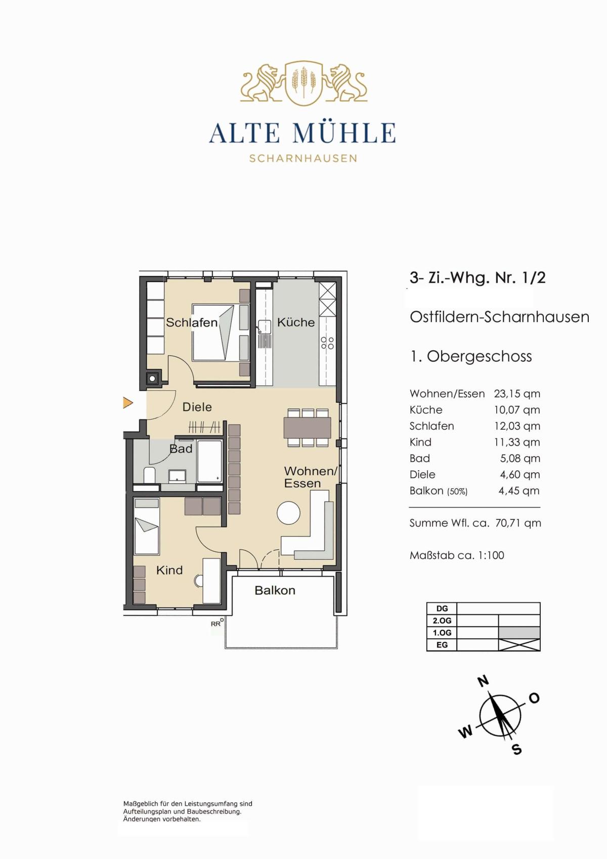 - Wohnungsgrößen im Objekt von 70 bis 107 m²
