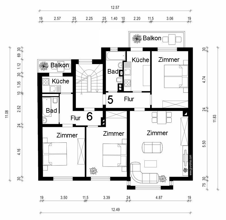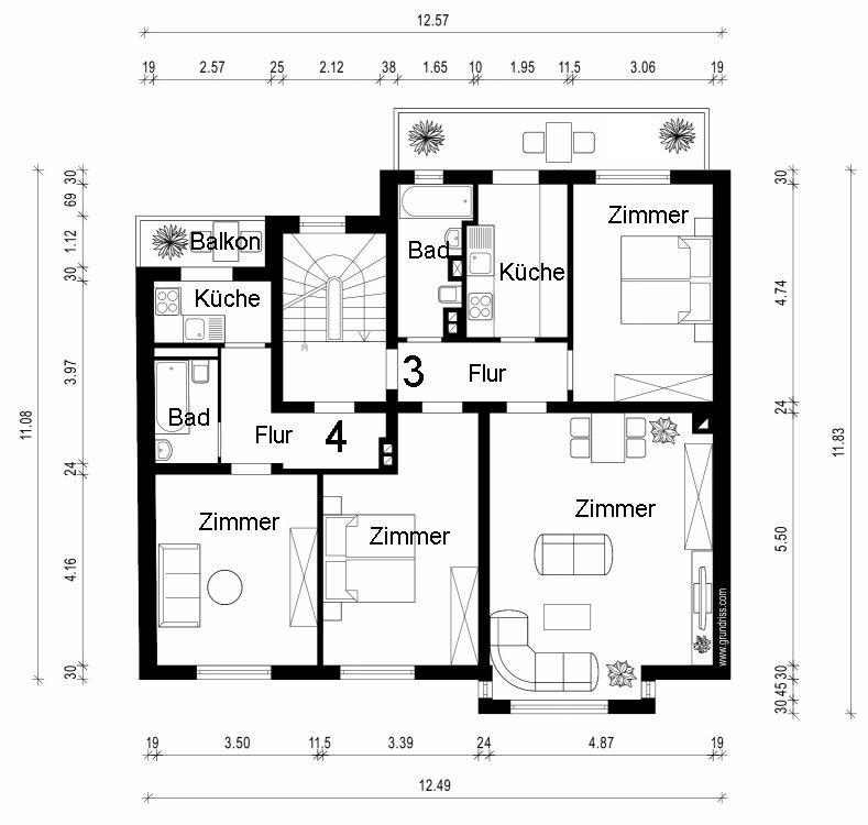 2 x 2-Zimmer, Küche, Bad, Balkon