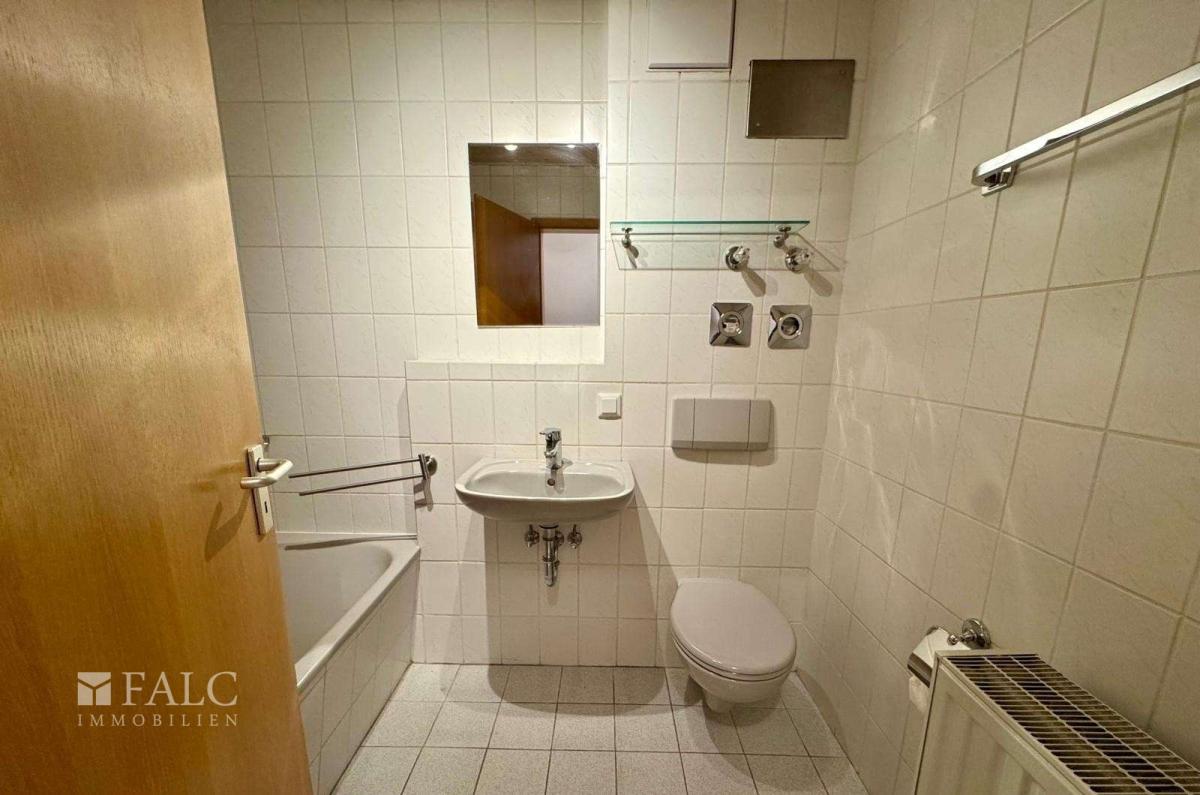 Das innenliegende Badezimmer ist funktional und zeitlos ausgestattet mit Badewanne, Waschbecken, WC und neuem Ventilator. Die Ausführung ist pflegeleicht und eignet sich sowohl zur direkten Nutzung als auch für eine spätere Modernisierung nach eigenem Geschmack.