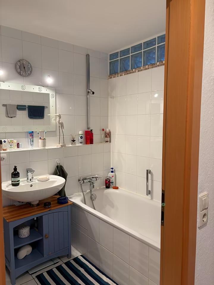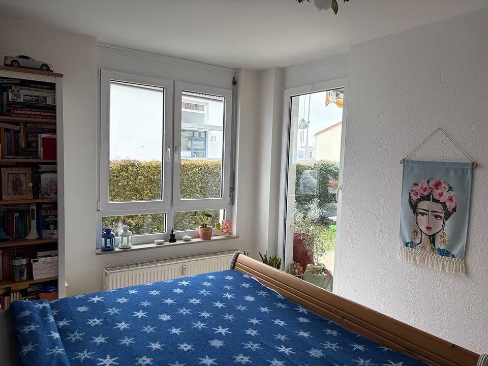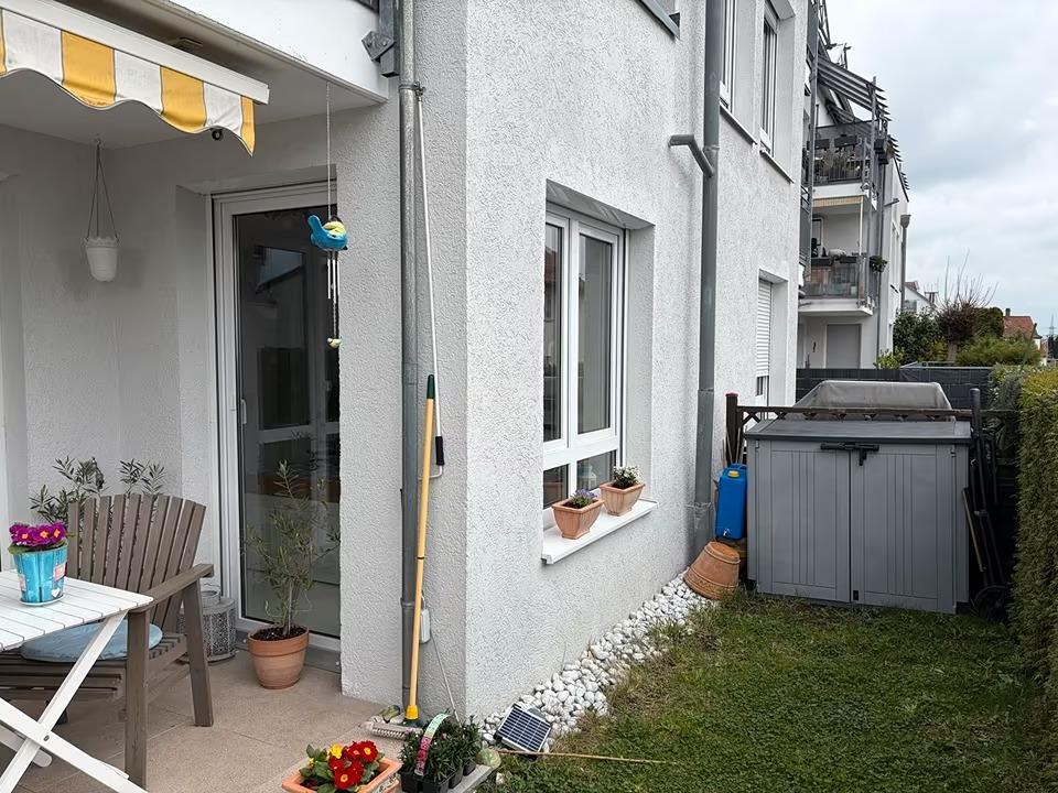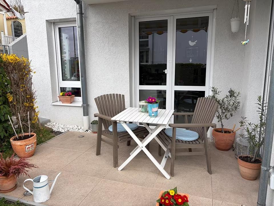 Zwei-Zimmer-Wohnung mit großer Terrasse und kleinem "Garten“, abgetrennt zur alleinigen Nutzung. Südterrasse, den ganzen Tag Sonne. Durch die vielen Fenster ein Wohlfühlambiente, wie im Urlaub. Zugang zur Wohnung, weil fast ebenerdig, kann auch über die Terrasse bzw. Balkontüre erfolgen. Diese lässt sich von außen durch einen fernbedienbaren Terrassentürantrieb von Abus inklusive Alarm auf- und zuschließen. Zur Wohnung gehört ein Keller. Trocken- und Fahrradraum und sogar ein eigener Spielplatz können mitbenutzt werden ! Der Clou ist die übergroße Garage mit Stromanschluss, Licht und fernbedienbarer Garagentoröffnung ! Diese ist für einen Preis von 25.000 € extra zu haben.
