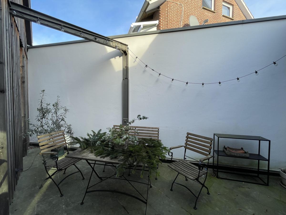 Auf rund 173 m² Wohnfläche, vollständig ebenerdig im Erdgeschoss, bietet die Wohnung ein großzügiges und repräsentatives Raumgefühl. Die durchdachte Raumaufteilung umfasst zwei Schlafzimmer, ein modernes Badezimmer, ein separates Gäste-WC sowie einen Hauswirtschaftsraum. Herzstück der Wohnung ist der offene Küchen- und Essbereich mit hochwertiger Einbauküche, der fließend in das großzügige Wohn- bzw. Kaminzimmer übergeht. Dort wird die historische Esse der ehemaligen Schmiede heute als offener Kamin genutzt. Ergänzt wird das Raumangebot durch ein lichtdurchflutetes Atrium innerhalb der Wohnung, das eine besondere Wohnatmosphäre schafft.