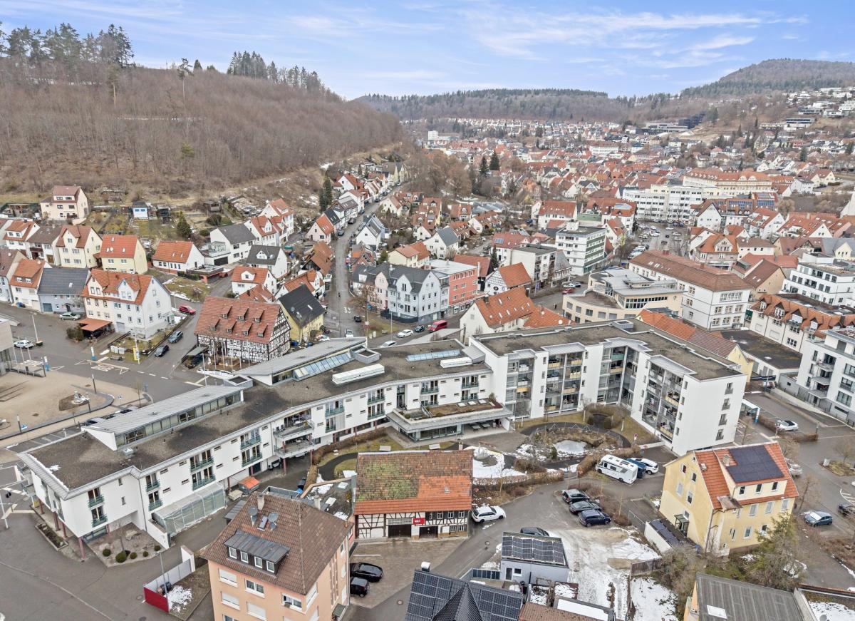 Die Wohnung befindet sich in einem Mehrfamilienhaus mit angrenzender Pflegeeinrichtung unweit der Tailfinger Mitte entfernt und bietet somit eine gute Infrastruktur für Einkäufe, Arztbesuche und Behördengänge.