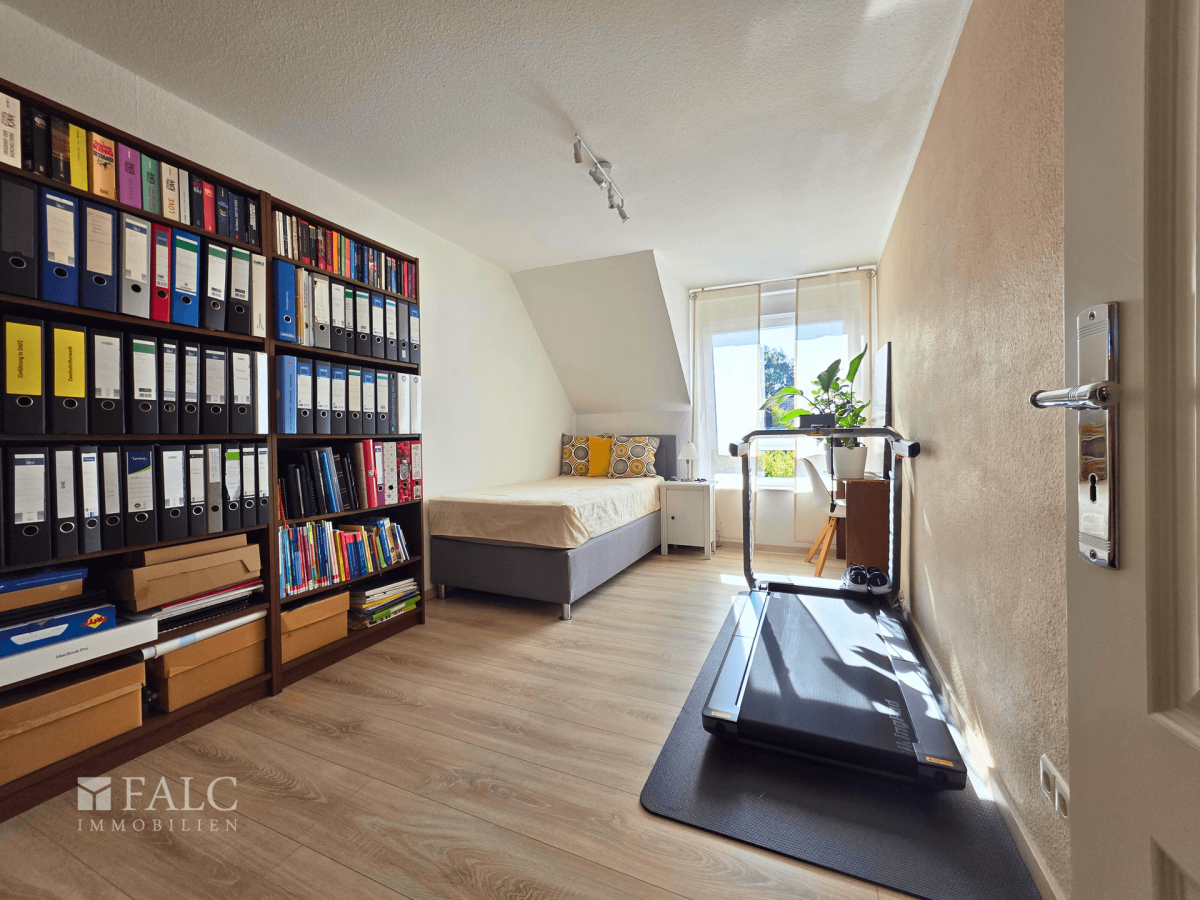 Der ausgebaute Spitzboden präsentiert sich mit integrierten Deckenspots und zwei Dachfenstern als vielseitig nutzbarer Rückzugsort, deal als Arbeitszimmer, Gästezimmer oder Hobbybereich.