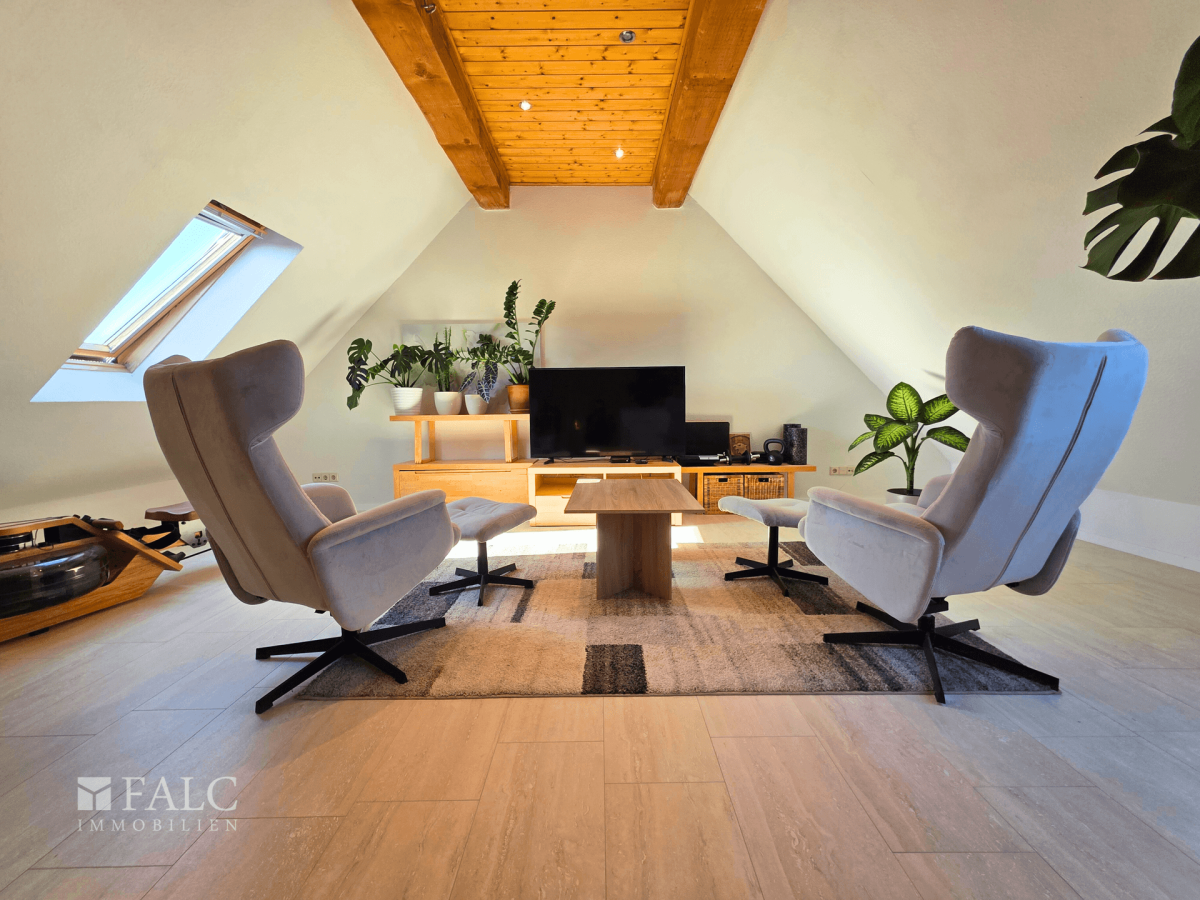 • Spitzboden mit integrierten Spots und zwei Dachfenstern, vielseitig nutzbar