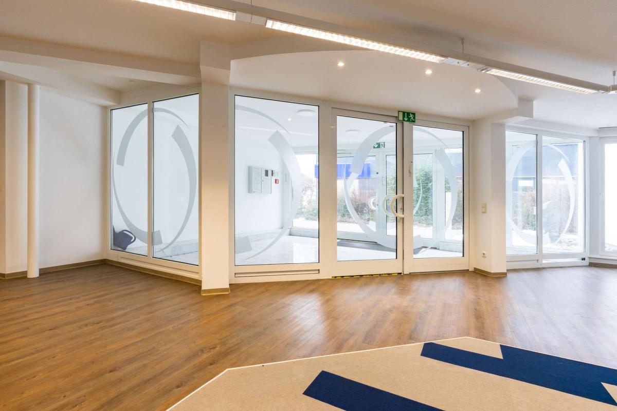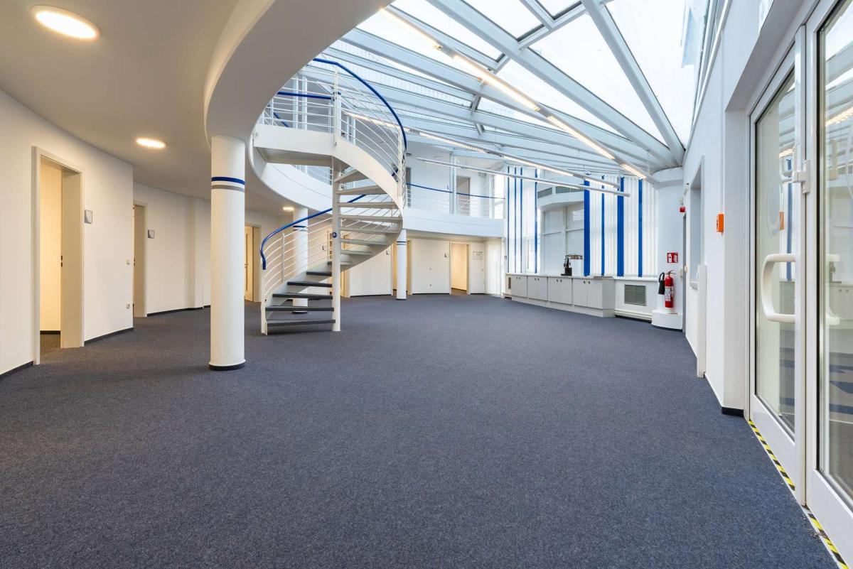 Der Zugang erfolgt über einen Windfang in einen großzügigen Empfangsbereich im Gebäudeteil B mit ca. 60 m², der sich ideal als zentrale Anlaufstelle für Mandanten und Besucher eignet. Von hier aus erschließt sich linker Hand der Neubau (Gebäudeteil A) mit lichtdurchflutetem Atrium. Um diesen offenen Bereich gruppieren sich insgesamt 16 Büroräume im Erd- und Obergeschoss. Die Büroeinheiten bewegen sich überwiegend in einer Größenordnung von ca. 16 m² bis ca. 22 m² und eignen sich ideal als Einzel- oder Zweipersonenbüros.