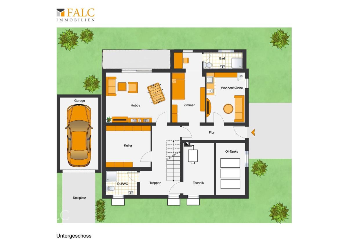 Auch der Hobbyraum ist zu Wohnzwecken ausgebaut. Hier fühlen sich Gäste bestimmt wohl, da diese sogar noch ein eigenes Bad im Untergeschoss nutzen können. Hier ist auch noch Renovierungsbedarf angesagt.