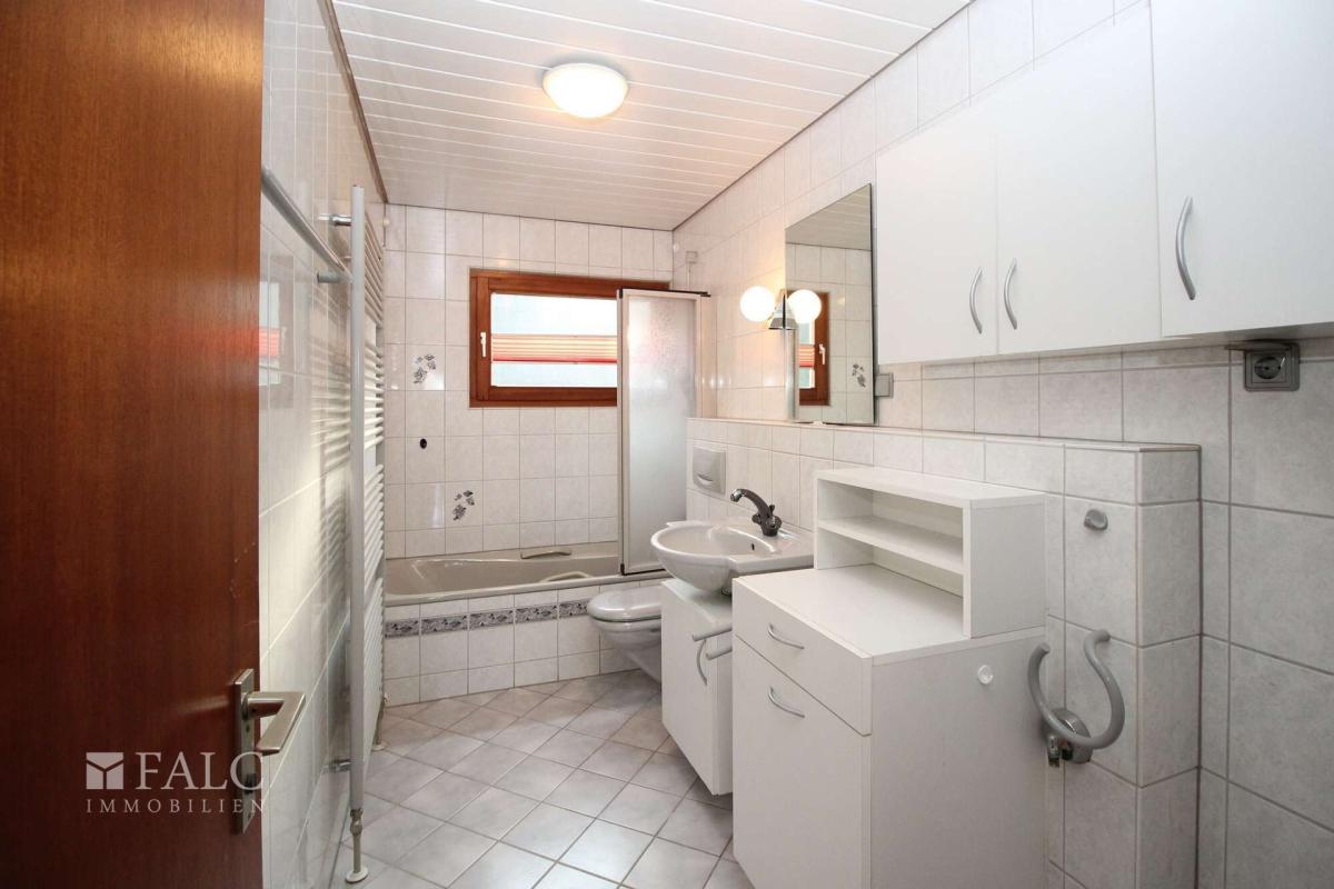 Das Familienbad im Erdgeschoss ist renoviert und mit Badewanne, WC, Waschbecken, Handtuchwärmekörper und einem Waschmaschinenanschluss ausgestattet.