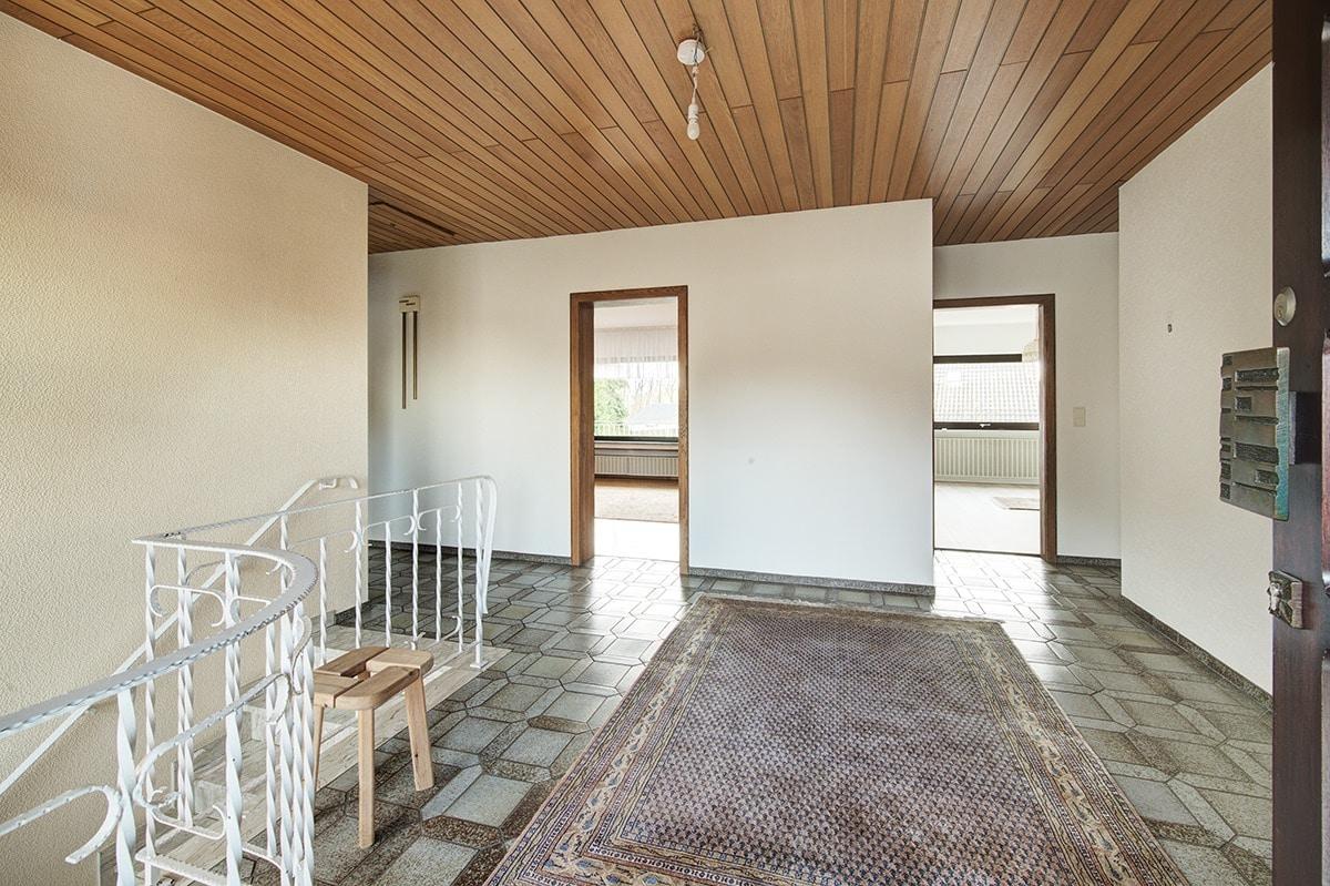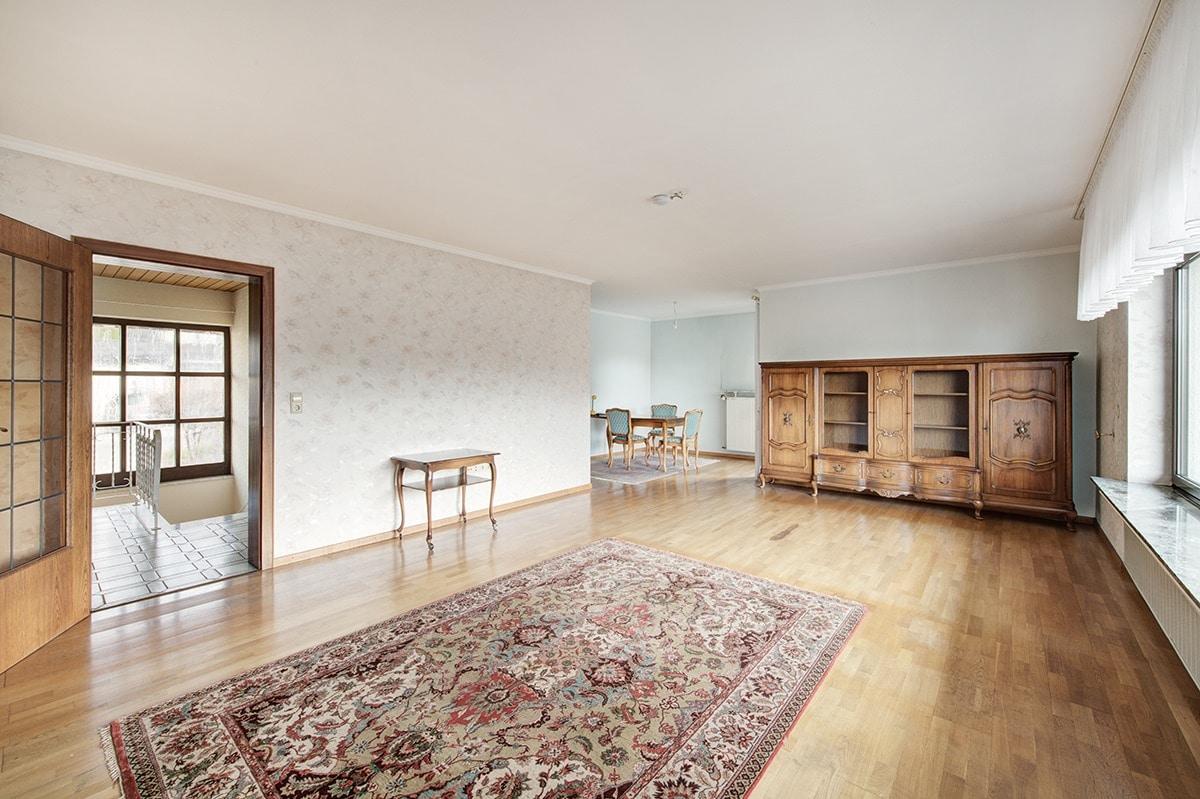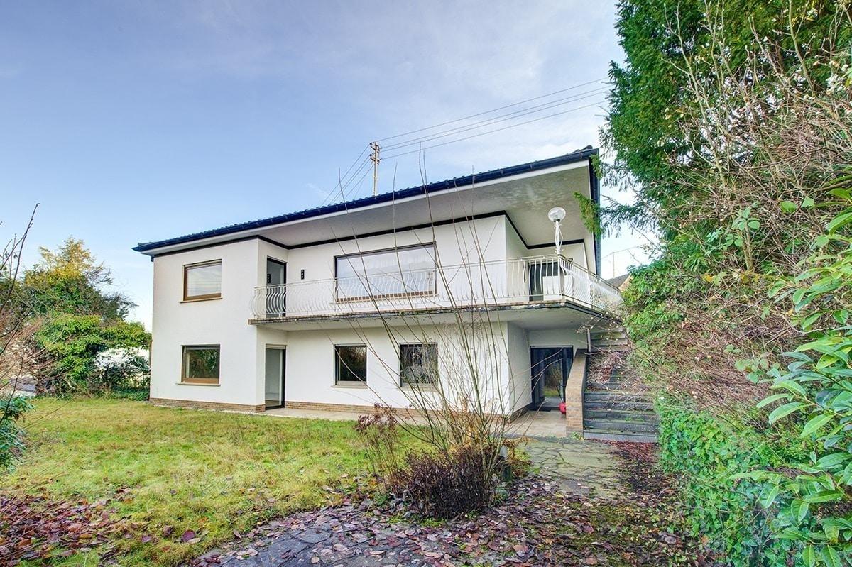 Das in seinem Ursprung um 1976/77 erstellte Wohnhaus mit tollem Aussichtsbalkon und Terrasse wurde durch einen seinerzeit bekannten Architekten geplant und in Massivbauweise erstellt. Die Immobilie wurde für eine große Familie konzipiert und erfreut sich einer üppigen Anzahl an Wohnräumen. Das Untergeschoss, welches stets eigengenutzt und für Schlafräume in Verwendung stand, kann bei Bedarf als separate Einliegerwohnung mit eigenem Eingang genutzt werden. Hier befinden sich, neben den genannten Schlafräumen, bereits ein Duschbad sowie entsprechende Anschlüsse für einen Küchenbereich. Auch ist ebenerdiges Wohnen auf einer Ebene im Bereich des Erdgeschosses möglich.