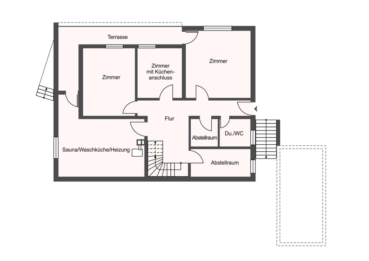 Ein weiteres Platzangebot für zusätzlichen Stauraum bietet der vorhandene Dachraum, welcher aufgrund des Walmdaches großzügig ausfällt. Des Weiteren beinhaltet das Hausangebot eine sep. Einzelgarage sowie eine Sauna. Die derzeit im Wohnhaus befindliche Einbauküche ist ebenfalls Gegenstand des Hausangebotes.