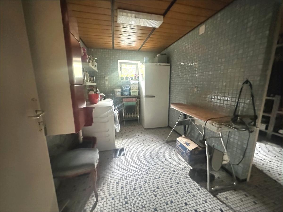 Im Untergeschoss befinden sich eine große Garage, ein Wellnessbereich mit Duschbad (ehemals Schwimmbad, jederzeit wieder aktivierbar), ein Büro mit Tageslicht, eine Waschküche sowie Abstell- und Vorratsräume.
