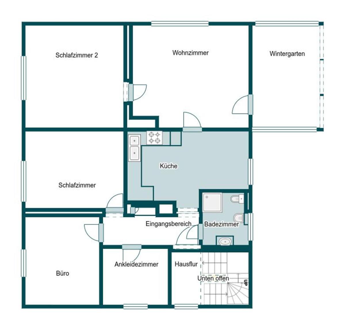 - Großzügige 5-Zimmer-Wohnung mit ca. 112 m² Wohnfläche im 1. Obergeschoss