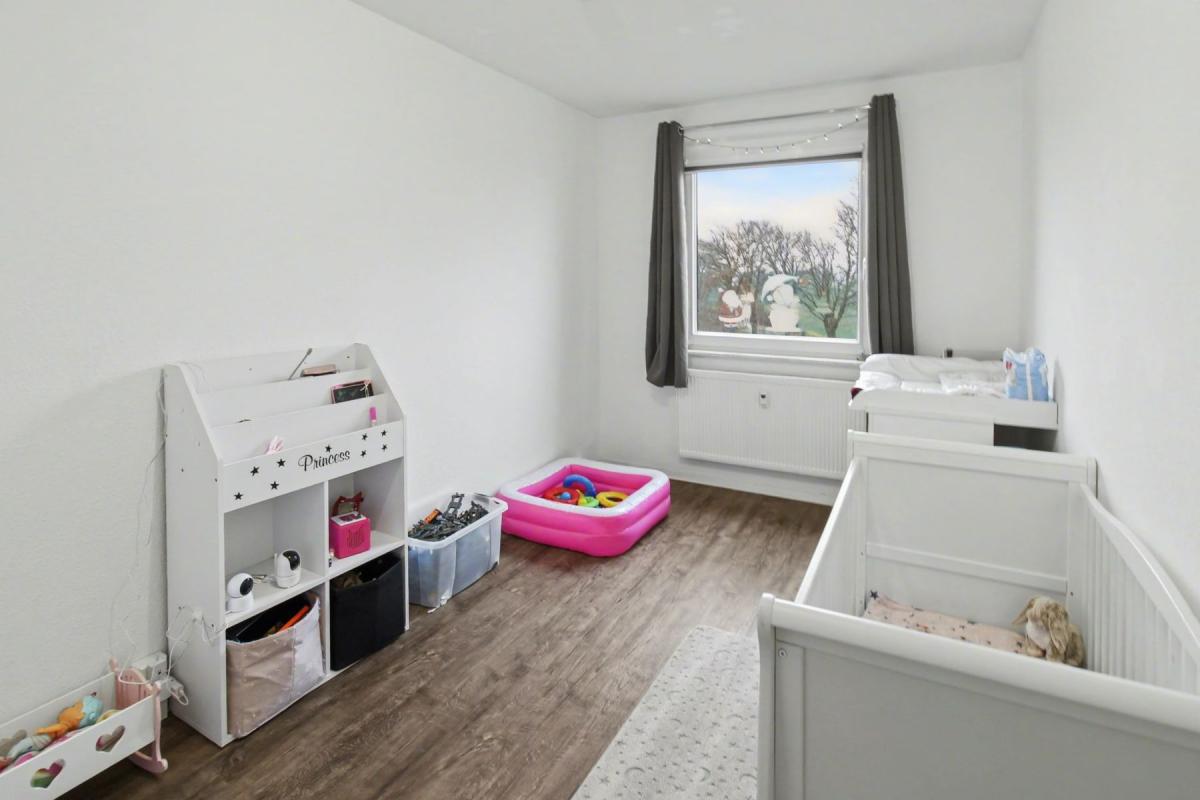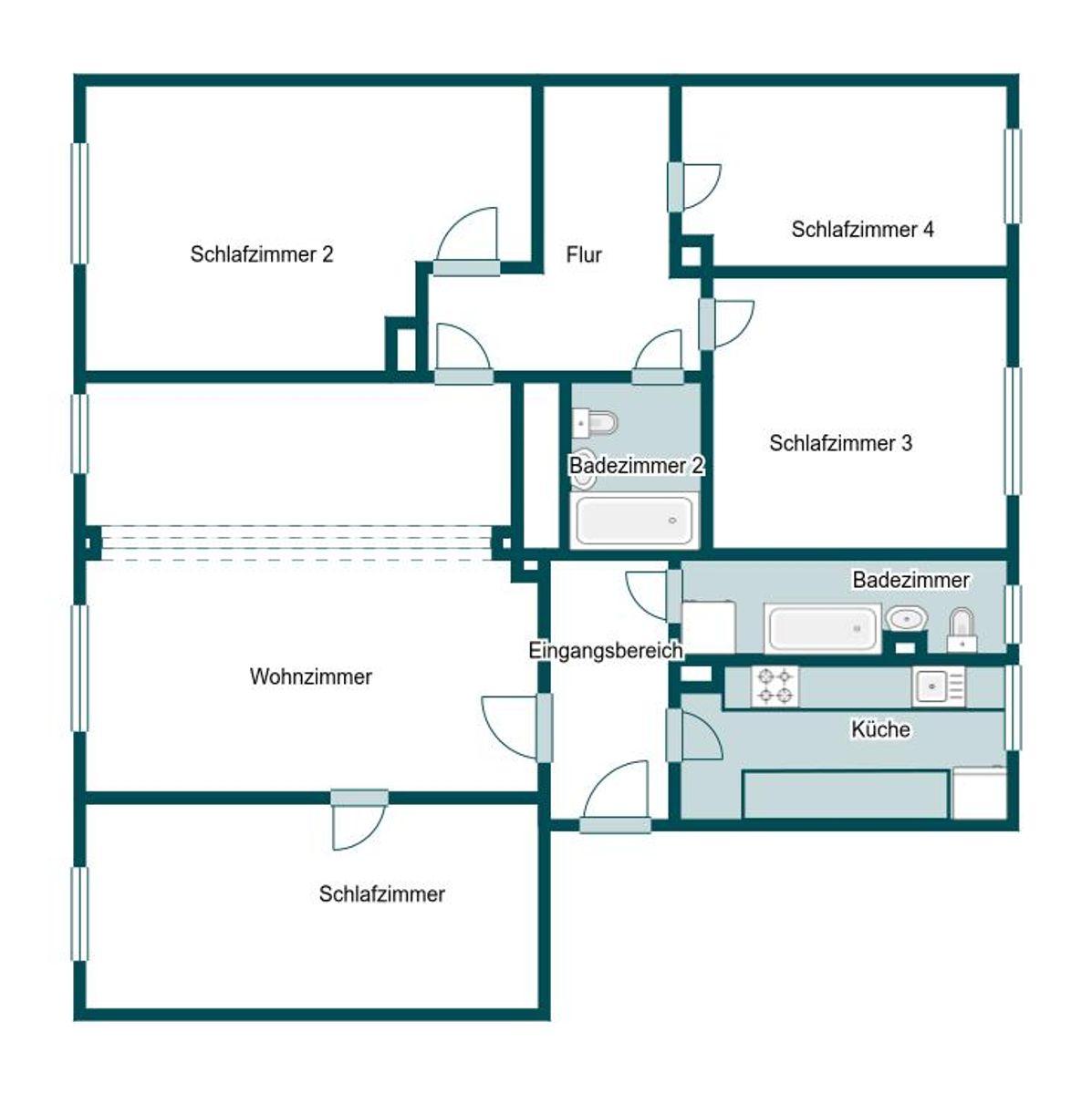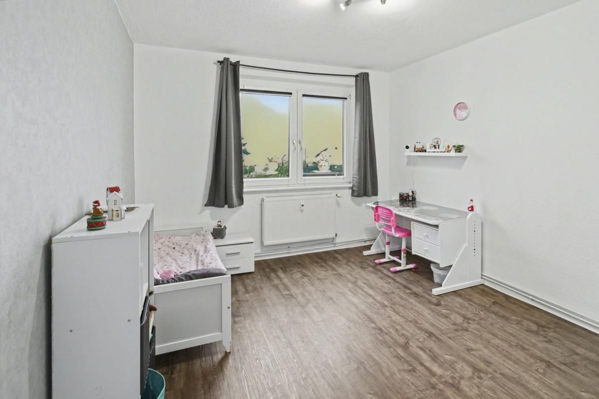 Die Wohnung befindet sich im 2. Obergeschoss eines 3-stöckigen Mehrfamilienhauses und verfügt über ca. 120 m² Wohnfläche. Insgesamt bietet der Grundriss 5 Zimmer, darunter 4 Schlafzimmer. Daneben stehen 2 Badezimmer mit Badewanne bereit. Familien profitieren von einer vorteilhaften Raumaufteilung, die den gemeinsamen Alltag erleichtert. Die Einbauküche und der Vinyl-Boden schaffen als Teil der guten Ausstattung Komfort im Alltag.