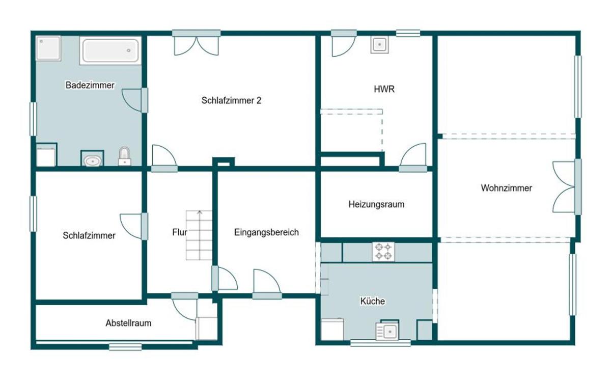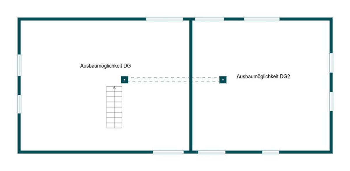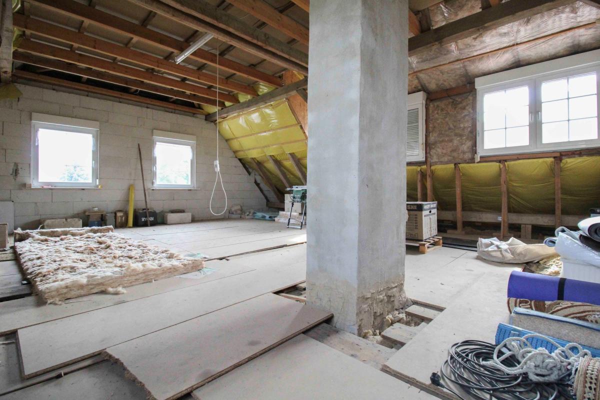 - Erdgeschoss inkl. Fußbodenheizung ca. 135 m² ausgebaut, Dachgeschoss mit Potenzial für ca. 80–90 m² zusätzlichen Wohnraum