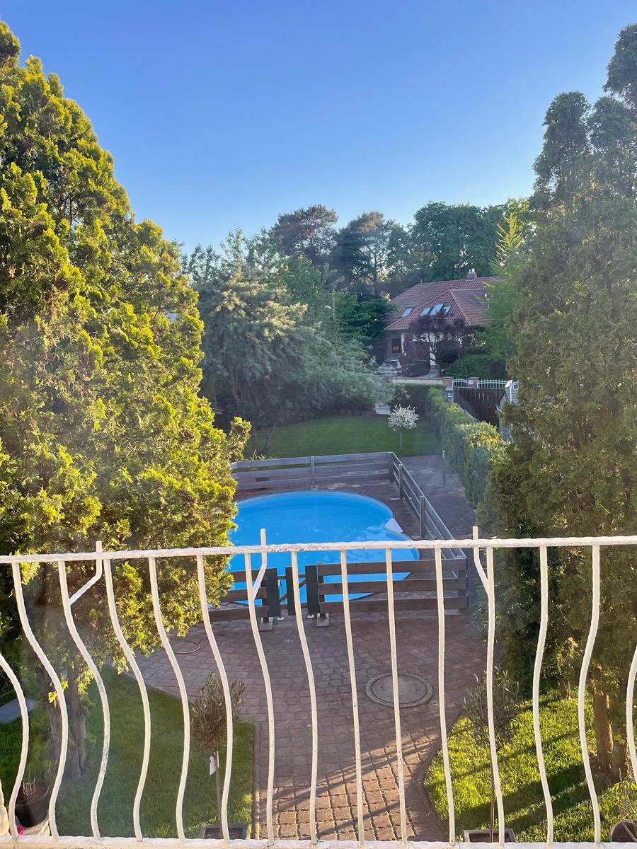 Balkon mit Blick Richtung Wald & Pool