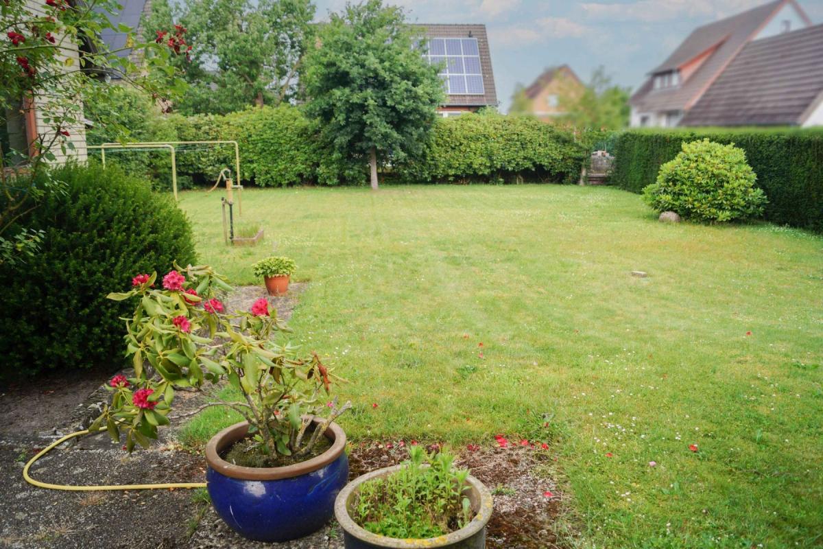 Der Außenbereich umfasst ein ca. 1.010 m² großes Grundstück und bietet Raum zur Erholung und Platz zum Spielen im großzügigem Garten.