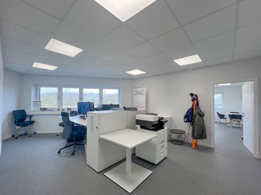 Diese moderne und lichtdurchflutete Bürofläche wurde 2023 mit KfW 55 Standard erbaut.