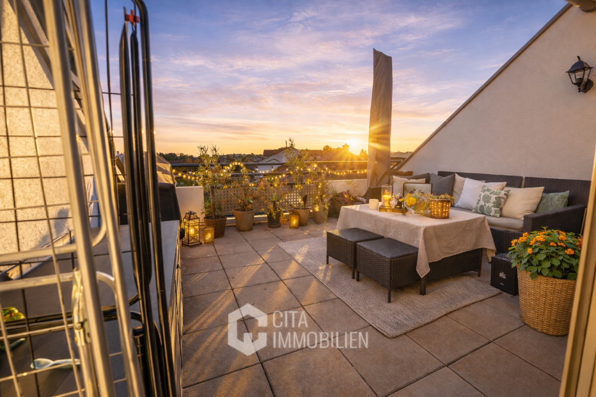GroĂźer Balkon mit direktem Zugang vom Wohnbereich