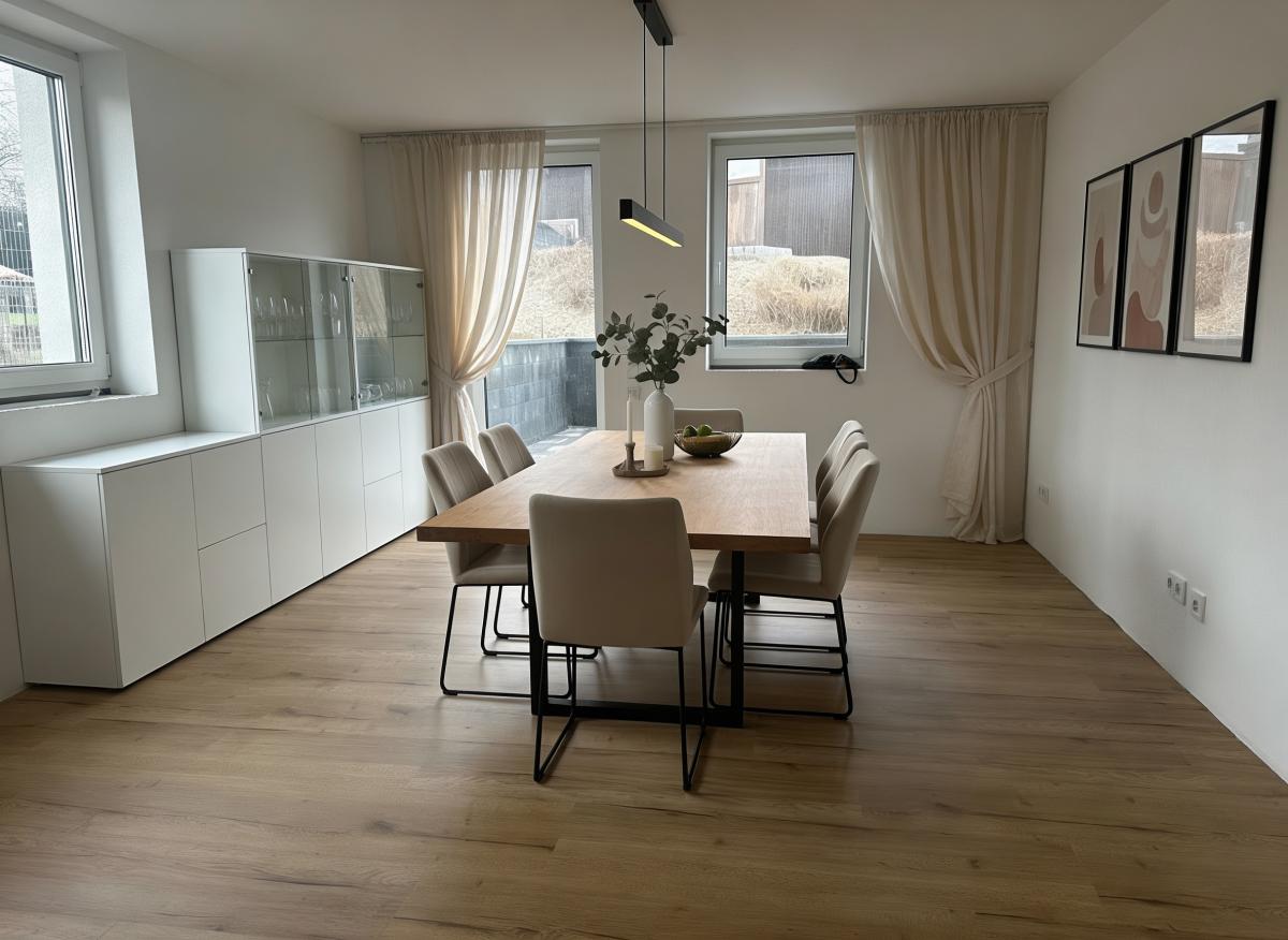 Die Wohnung ist hochwertig ausgestattet und erfüllt moderne energetische Standards. Beheizt wird sie über eine energieeffiziente Wärmepumpe mit Fußbodenheizung in allen Räumen. Dreifach verglaste Fenster mit elektrischen Rollläden sorgen für hervorragende Wärme- und Schalldämmung. Strom und Wasser werden vom Mieter separat angemeldet, wodurch eine transparente Kostenkontrolle gewährleistet ist.