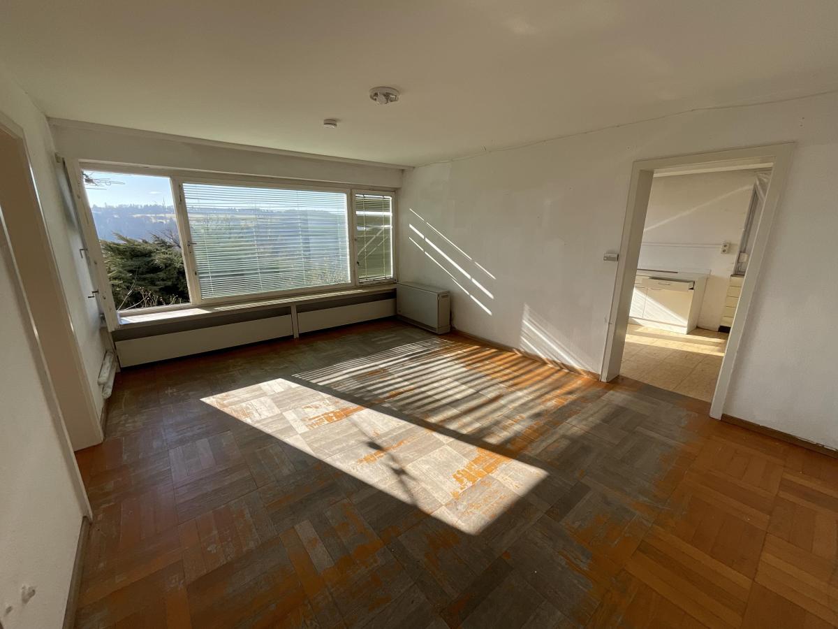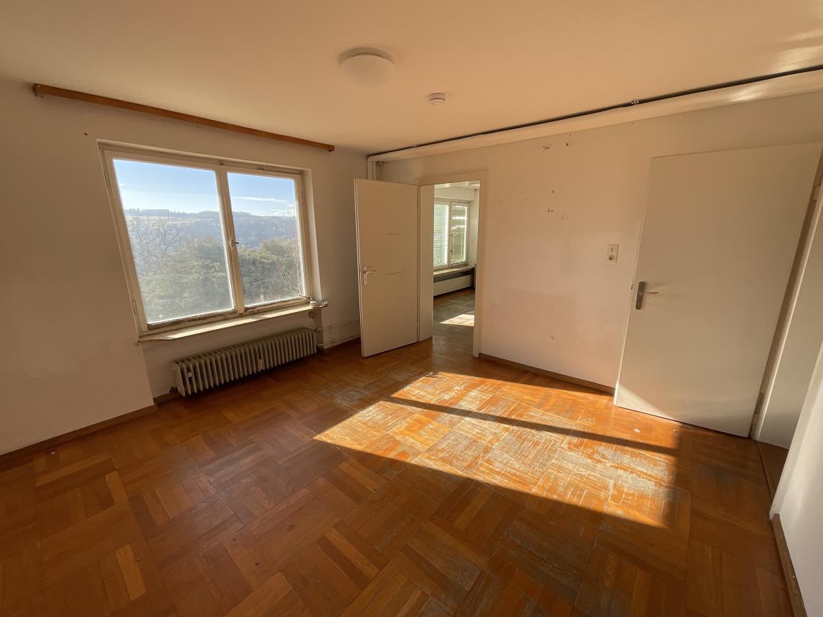 Bereits beim Betreten spürt man das Potenzial dieser Immobilie. Die Erdgeschosswohnung überzeugt mit ca. 105 m² Wohnfläche, sechs hellen, freundlichen Zimmern und einem Balkon in herrlicher Aussichtslage – der perfekte Ort, um den Tag entspannt ausklingen zu lassen.