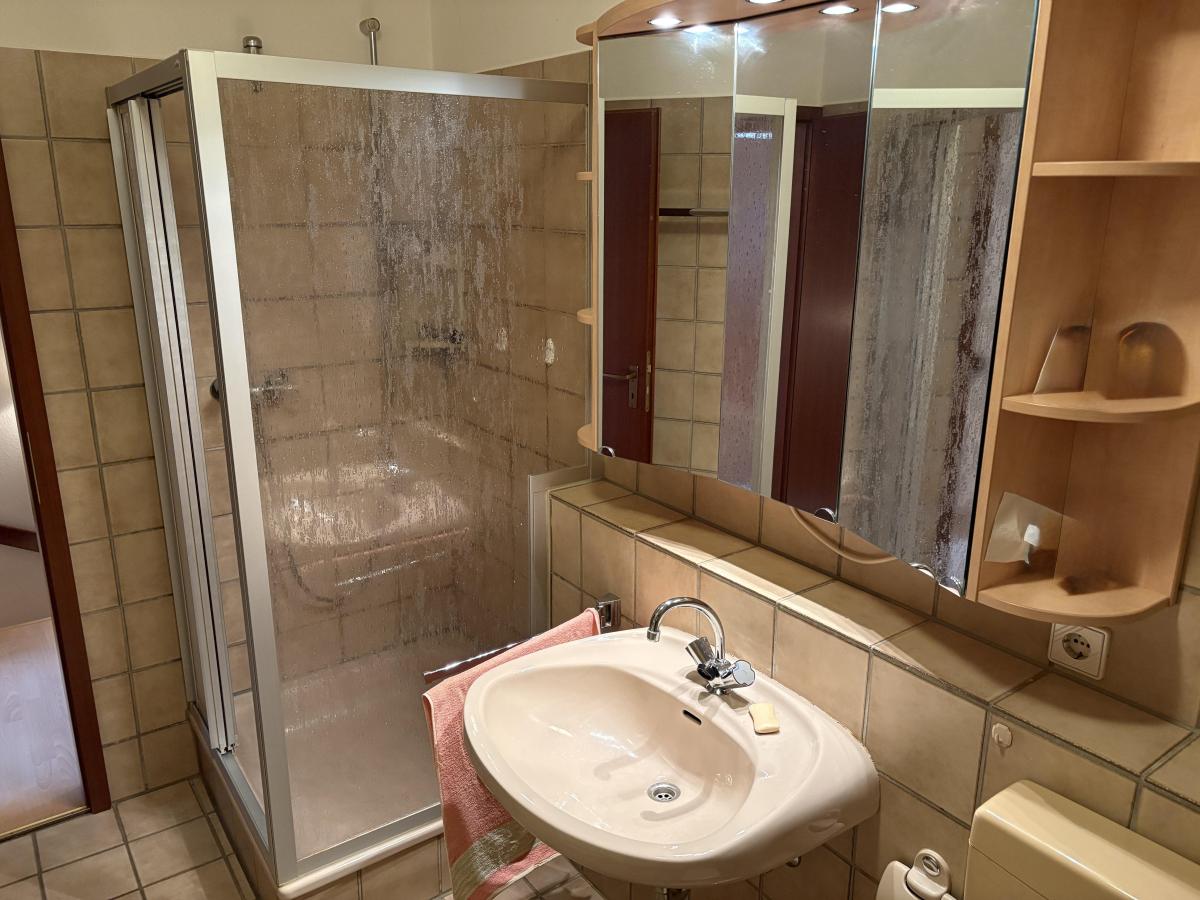 Des Weiteren gibt es ein Tageslicht-Badezimmer mit Badewanne und Dusche, sowie einen Balkon, welcher zum Verweilen einlädt und einen schönen Ausblick auf den Garten bietet.