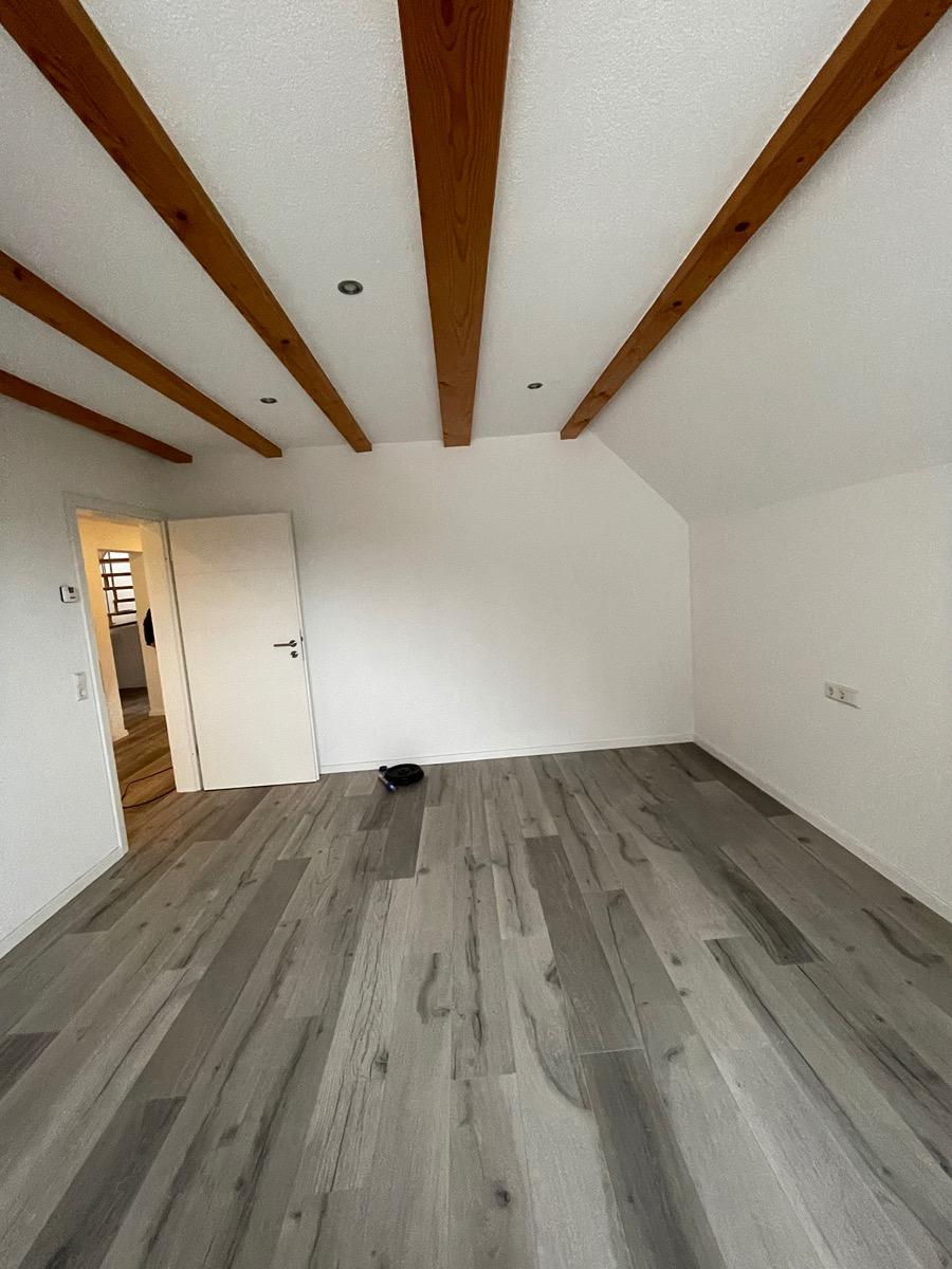 • Zwei helle Zimmer (mit Dachschrägen und Holzbalken – ideal als Kinder-/Gäste-/Bürozimmer)