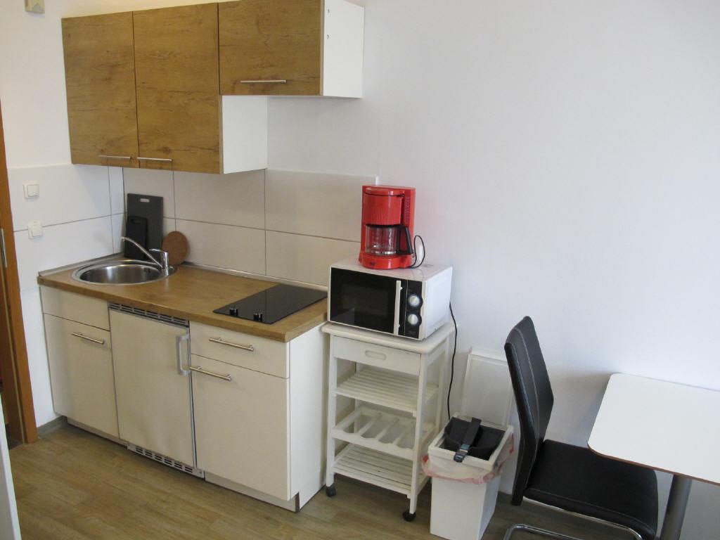 Auf ca. 33m² erwartet Sie ein möbliertes Appartement inkl. Bett, Schreibtisch, Kleiderschrank, Küchenzeile und Bad mit Dusche.