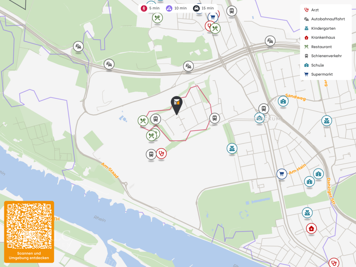 Neben Business und Eventkultur überzeugt Stockum jedoch ebenso als ruhiges und gepflegtes Wohnviertel. Rund um den Freiligrathplatz prägen ansprechende Wohnsiedlungen das Bild und schaffen eine angenehme Nachbarschaftsatmosphäre. Die gewachsene Infrastruktur ermöglicht kurze Wege im Alltag: Supermärkte, Bäckereien, Ärzte, Apotheken und weitere Einrichtungen des täglichen Bedarfs sind schnell erreichbar.