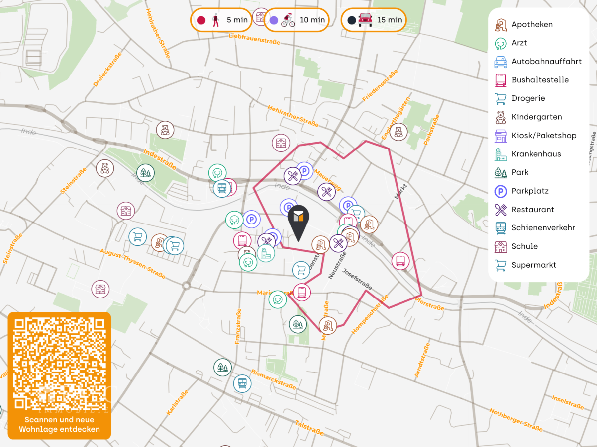 In nur 5 Fahrminuten erreichen Sie die Autobahnen in alle Richtungen und den Bahnhof Eschweiler.